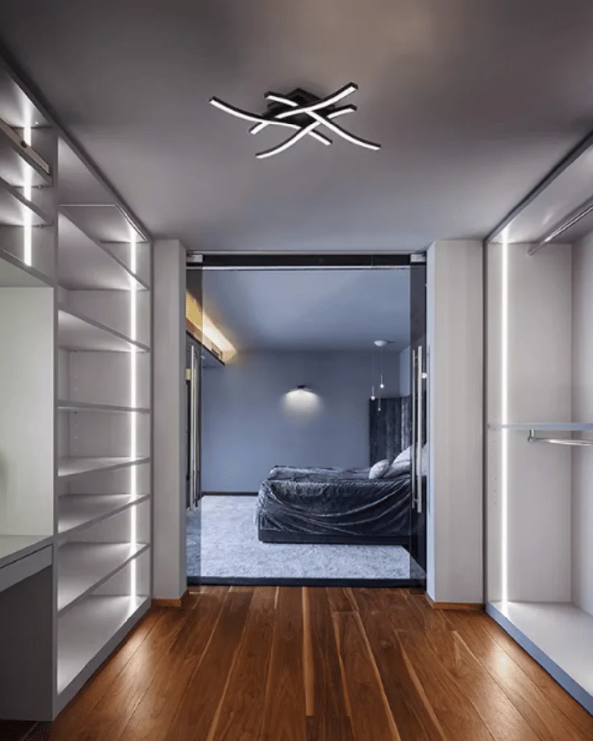 Valorizza i tuoi interni con Le Flux , una lampada da soffitto scultorea che fonde precisione minimalista e fluidità artistica. Ispirata al movimento fluido delle onde, la sua elegante intersezione dei bracci LED proietta una luce soffusa e avvolgente, ideale per creare un'atmosfera tranquilla e raffinata.