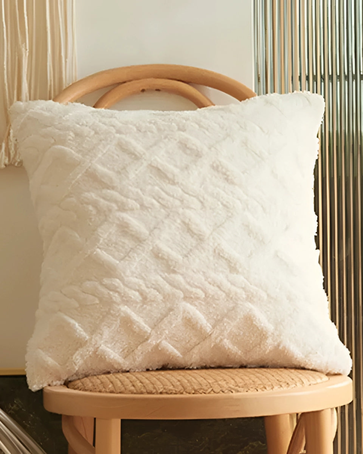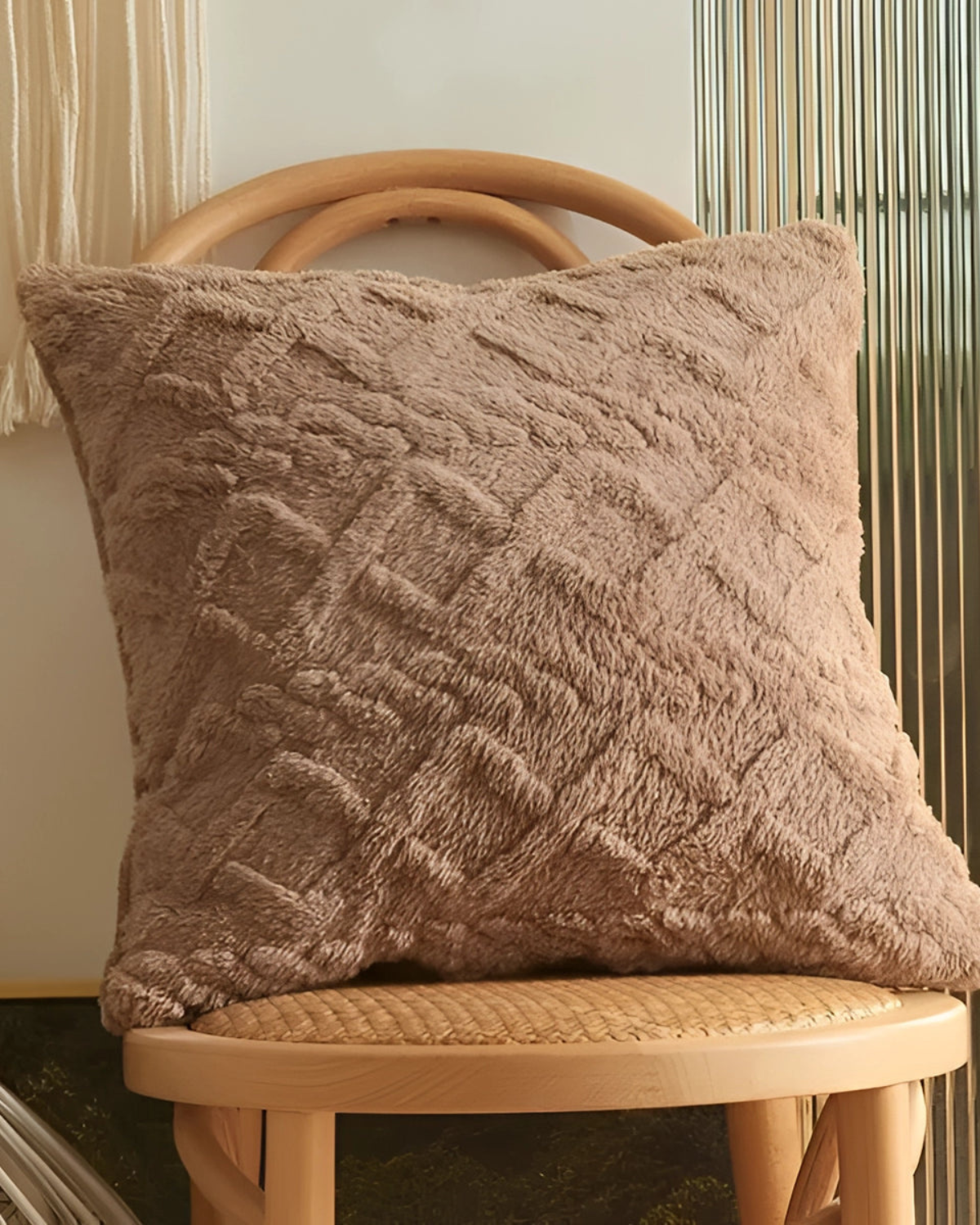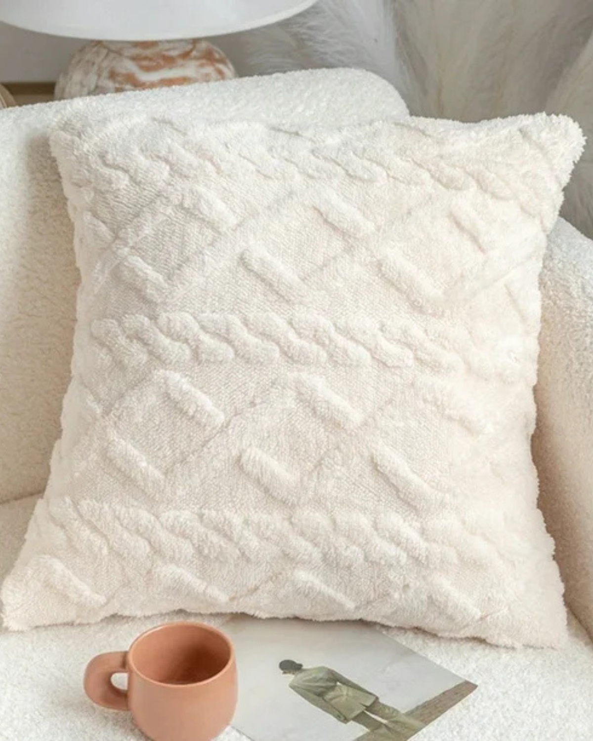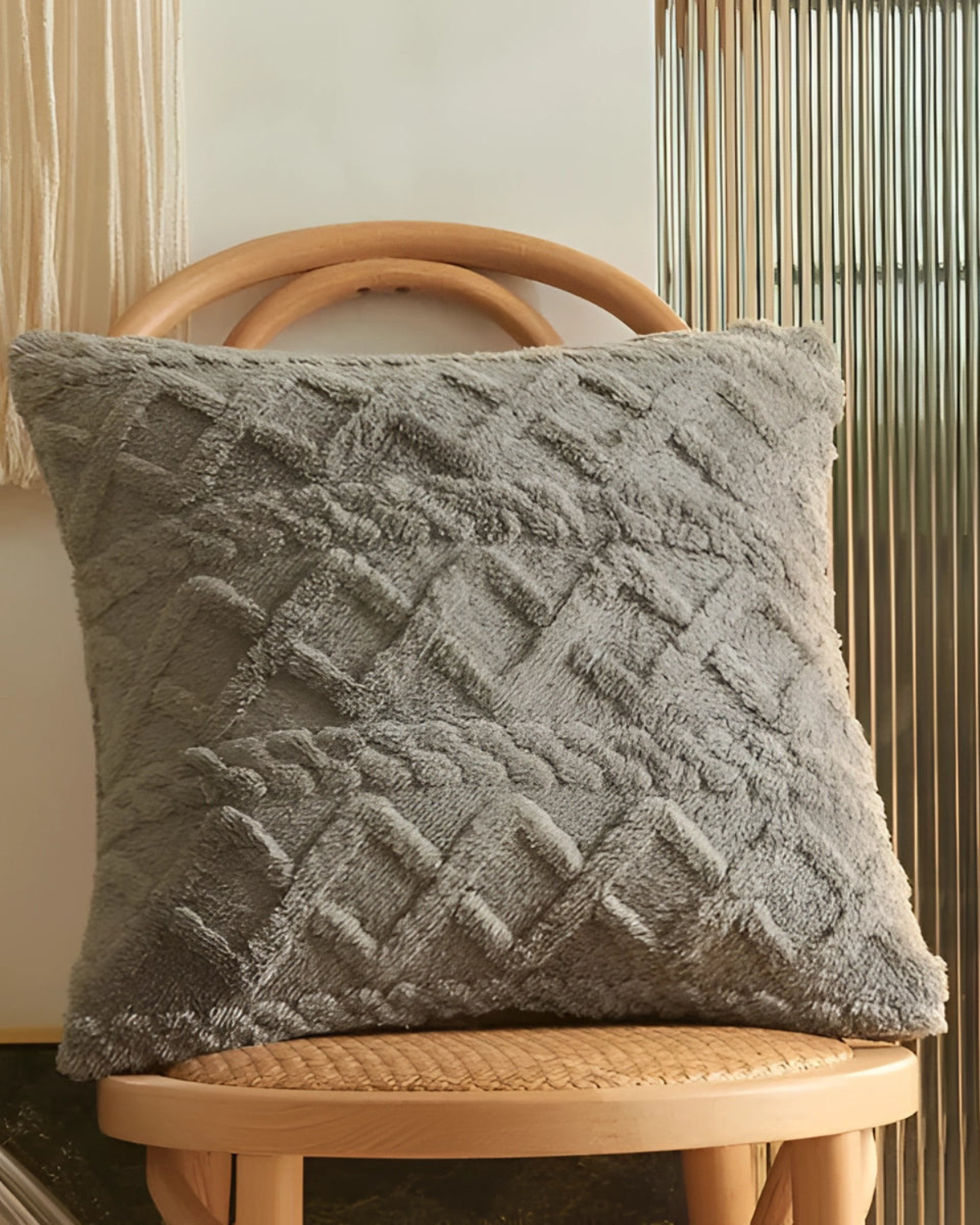 Esalta il tuo spazio abitativo con il cuscino Relief , dove la morbidezza incontra la raffinatezza. Realizzato in un morbido tessuto a pelo lungo, questo cuscino presenta un intricato motivo in rilievo che aggiunge profondità e dimensione a qualsiasi ambiente. Il sottile rilievo geometrico crea un'esperienza tattile, integrandosi perfettamente con l'estetica Japandi e gli interni moderni.
