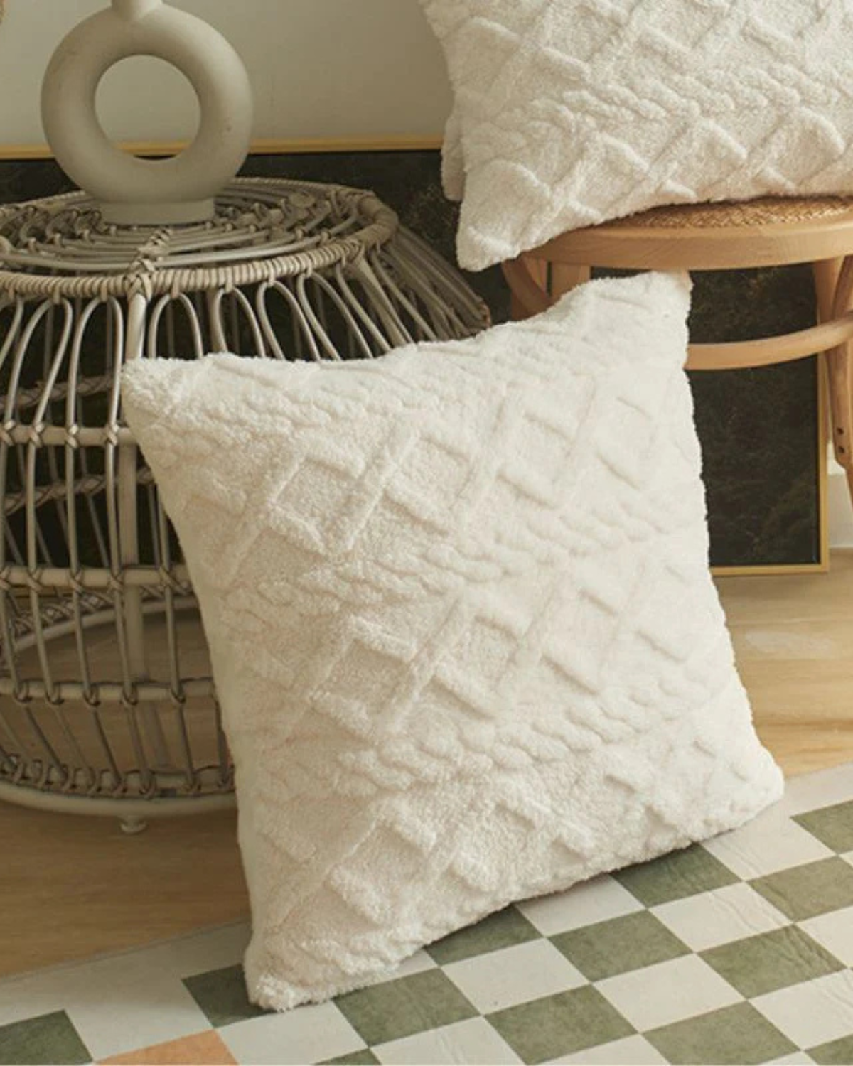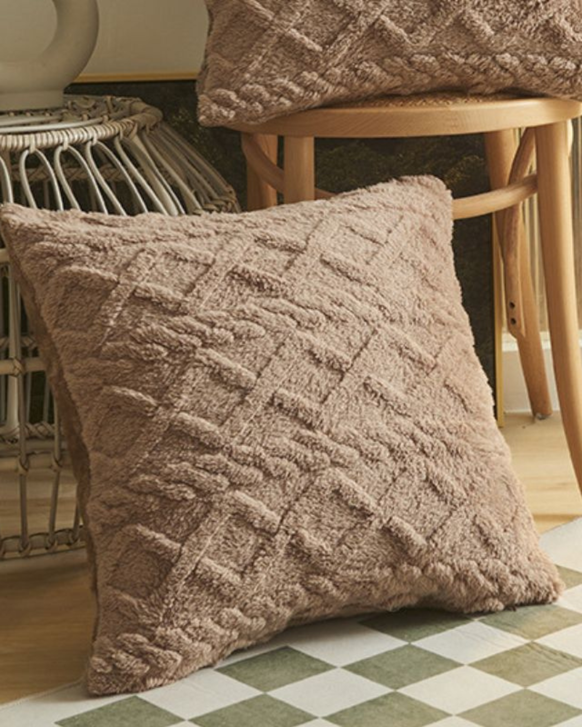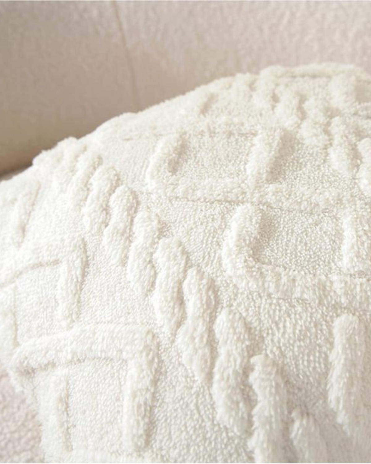 Esalta il tuo spazio abitativo con il cuscino Relief , dove la morbidezza incontra la raffinatezza. Realizzato in un morbido tessuto a pelo lungo, questo cuscino presenta un intricato motivo in rilievo che aggiunge profondità e dimensione a qualsiasi ambiente. Il sottile rilievo geometrico crea un'esperienza tattile, integrandosi perfettamente con l'estetica Japandi e gli interni moderni.