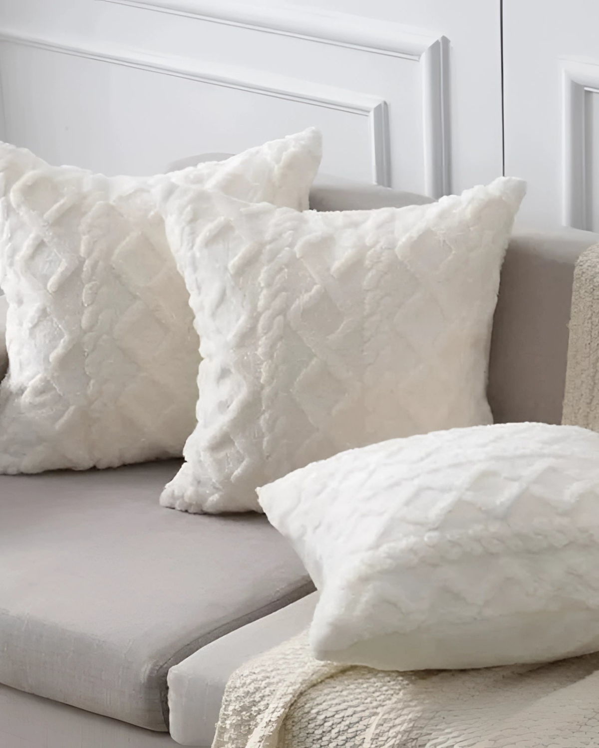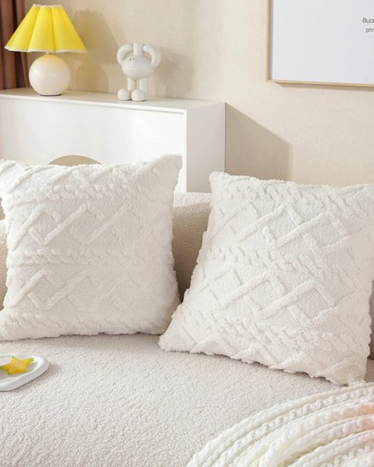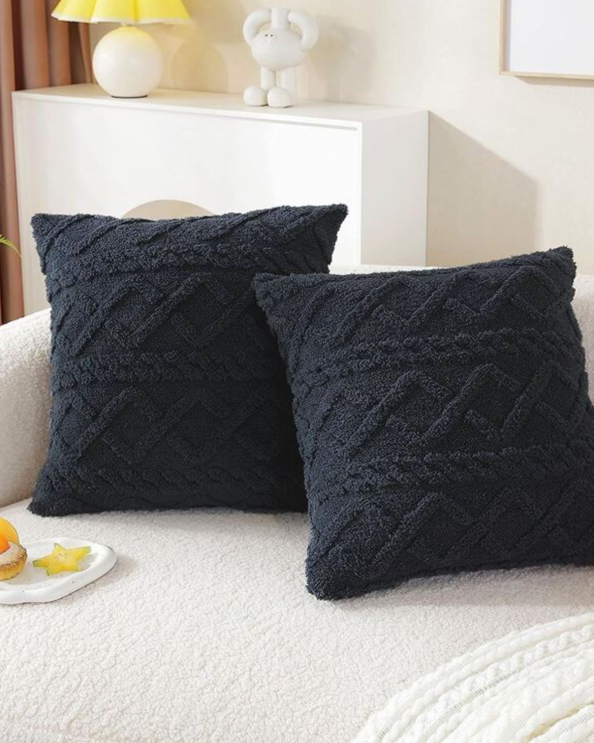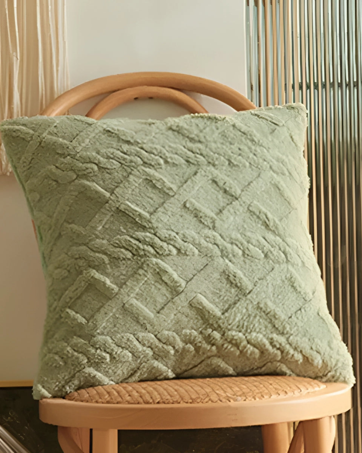 Esalta il tuo spazio abitativo con il cuscino Relief , dove la morbidezza incontra la raffinatezza. Realizzato in un morbido tessuto a pelo lungo, questo cuscino presenta un intricato motivo in rilievo che aggiunge profondità e dimensione a qualsiasi ambiente. Il sottile rilievo geometrico crea un'esperienza tattile, integrandosi perfettamente con l'estetica Japandi e gli interni moderni.