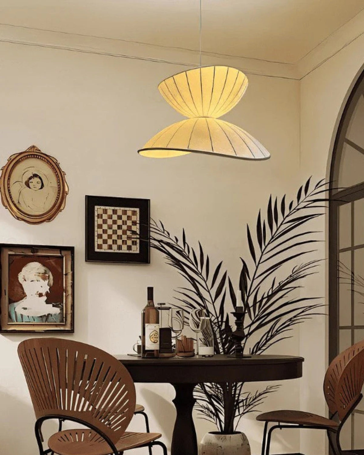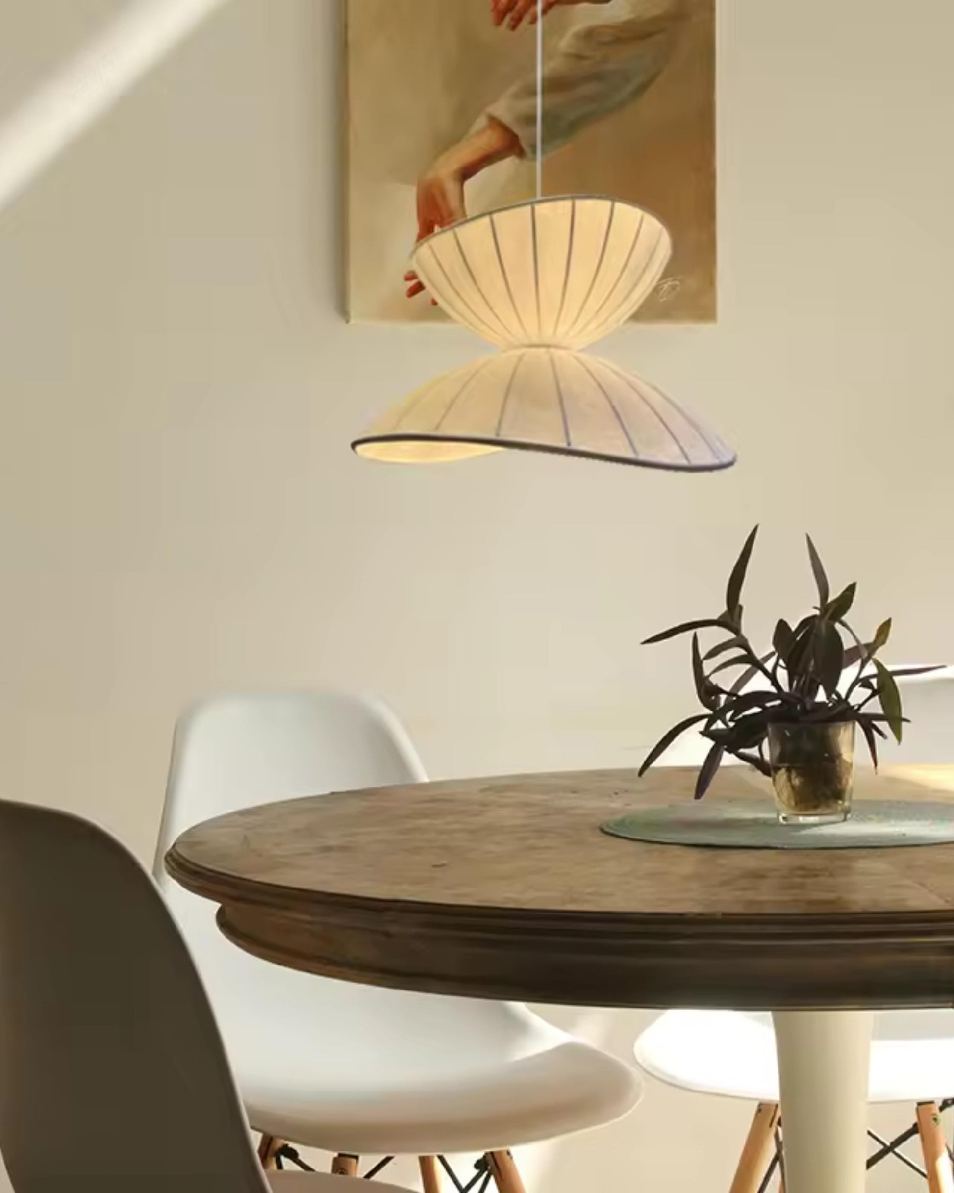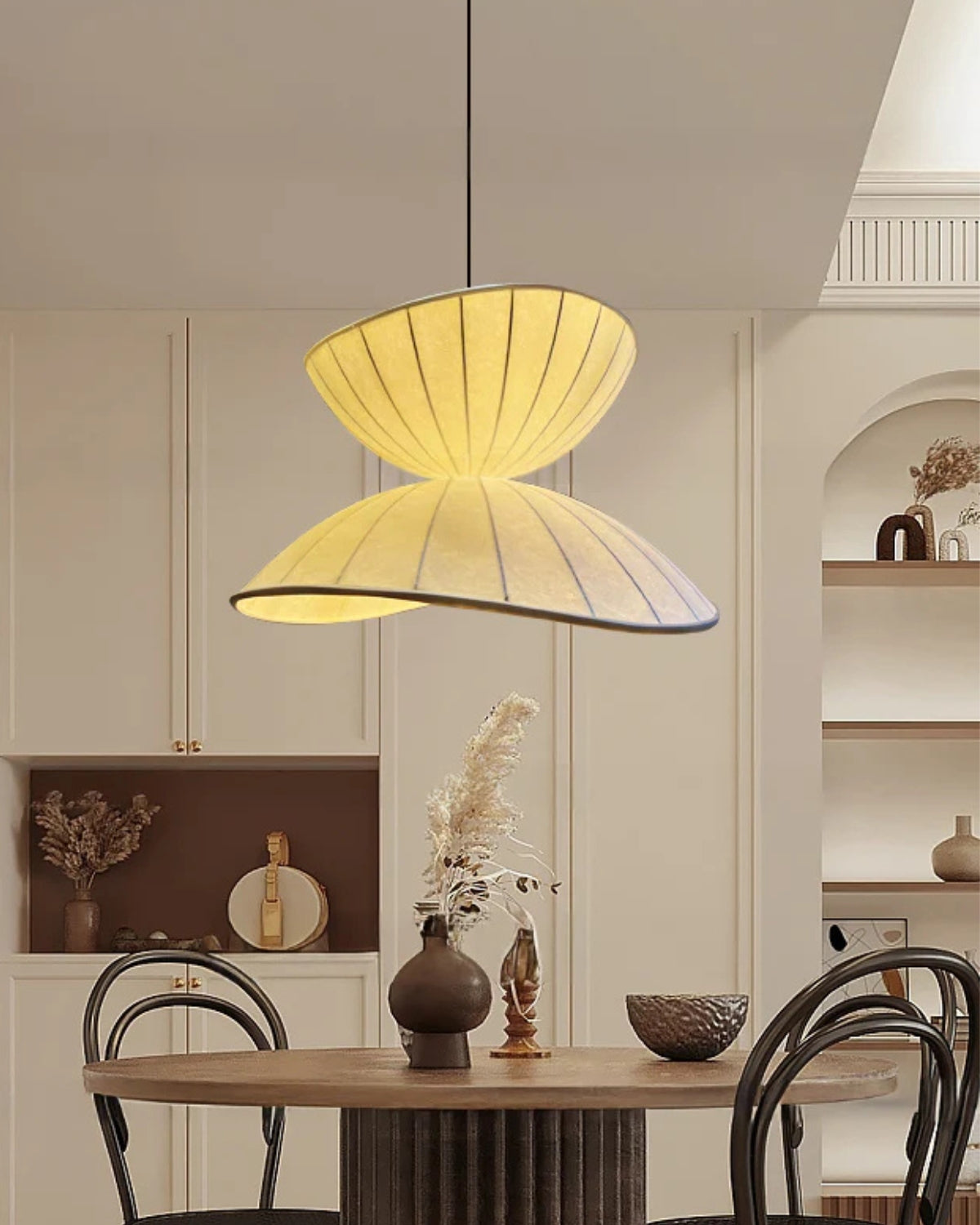 Esalta l'atmosfera del tuo spazio abitativo con Le Papillon Lumineux , una squisita lampada a sospensione che fonde la delicata bellezza della seta con l'eleganza minimalista del design Japandi. Ispirata alla semplicità senza tempo degli stili giapponese e scandinavo, questa lampada porta un'aria di tranquillità in ogni stanza, rendendola un'aggiunta perfetta alla tua sala da pranzo, camera da letto o soggiorno. Il paralume in seta morbido e curvo evoca un senso di calma e raffinatezza, esaltando l'atmosfera di ogni ambiente.