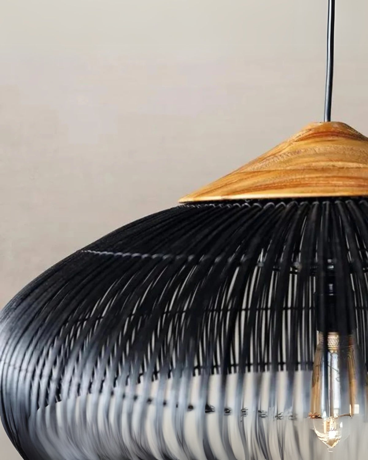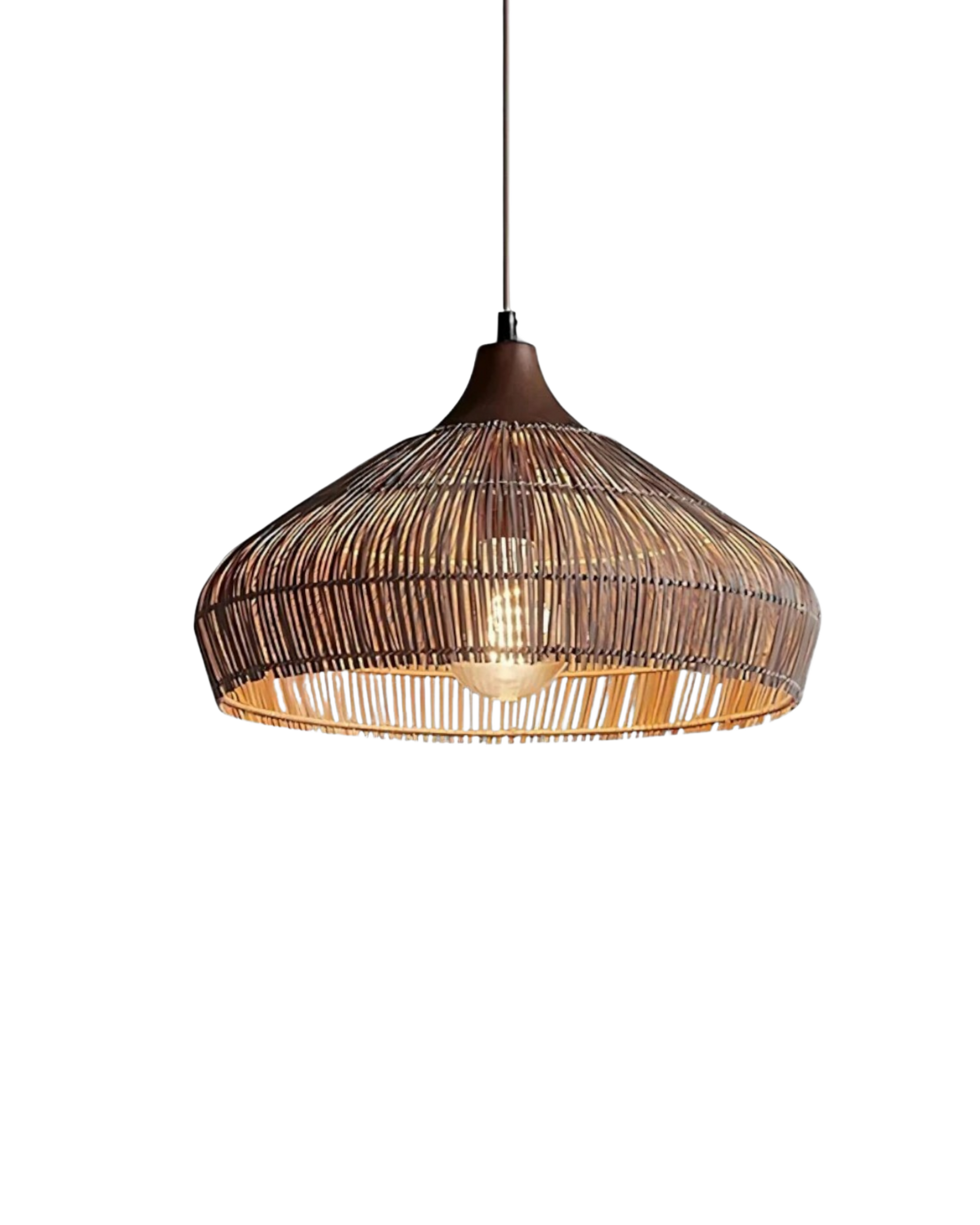 Vi presentiamo La Lueur Tressée , una squisita lampada a sospensione in rattan realizzata a mano che trasforma il vostro spazio in un'oasi di serenità. Ispirata all'estetica Japandi, fonde perfettamente l'eleganza minimalista con il calore boho, creando un pezzo unico che irradia tranquillità. Perfetta per chi apprezza l'arte dell'artigianato e i materiali naturali.