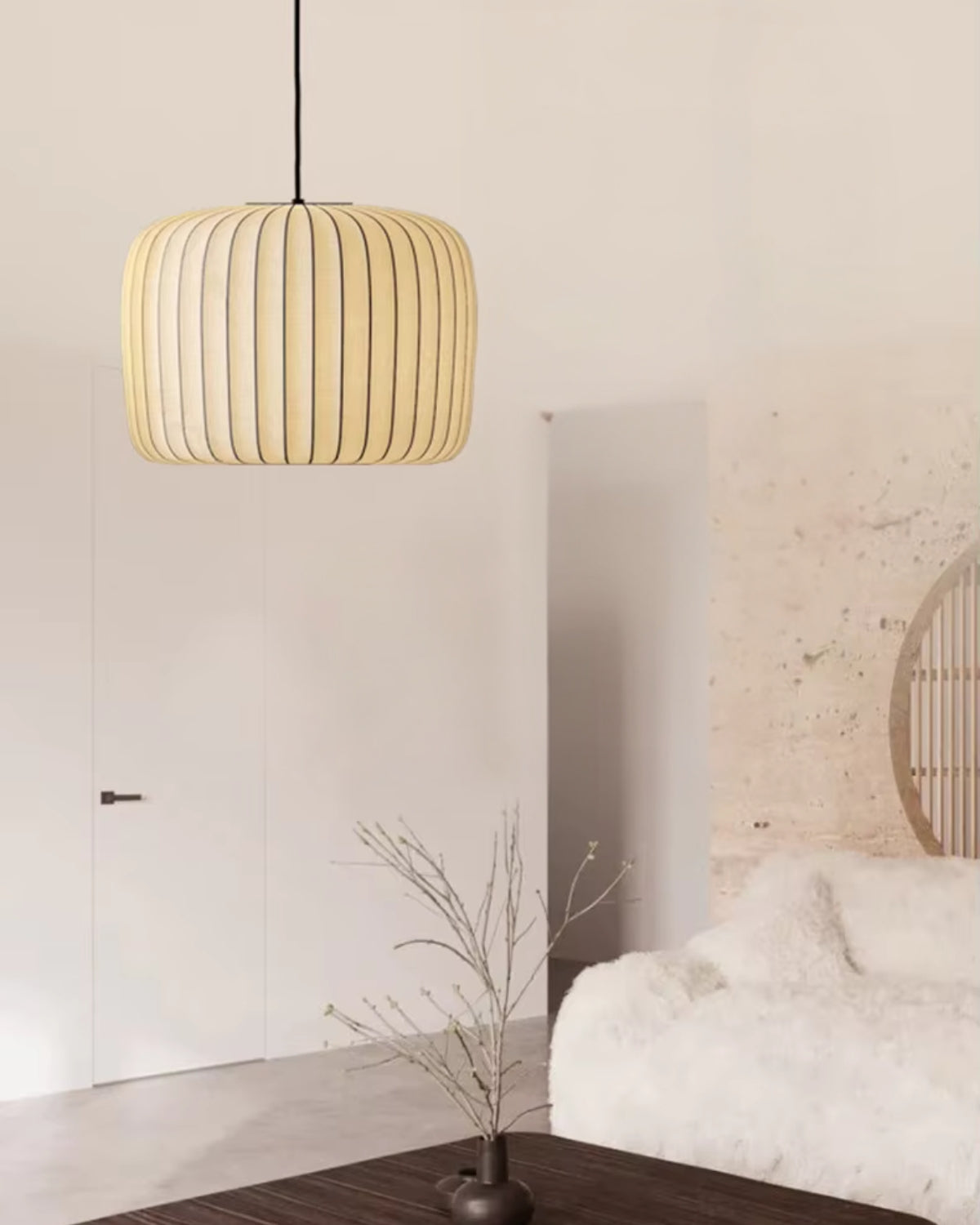 Illumina il tuo spazio abitativo con la squisita eleganza di La Lumière Sublime . Progettata per evocare un senso di serenità, questa lampada a sospensione presenta un paralume in tessuto fatto a mano che diffonde la luce in modo delicato e uniforme. La sua estetica minimalista e moderna si adatta a un'ampia gamma di stili d'interni, dal retrò giapponese all'arredamento contemporaneo. Ogni paralume è meticolosamente realizzato a mano, offrendo una luce morbida e naturale che esalta l'atmosfera della tua sala da pranzo, soggiorno o camera da letto.