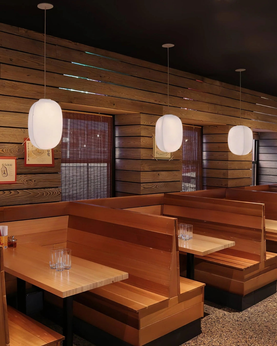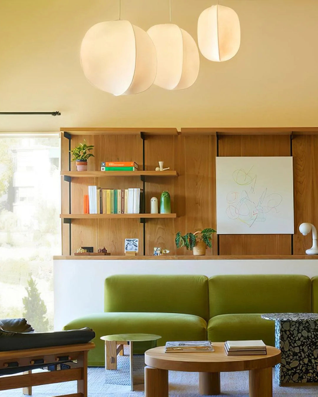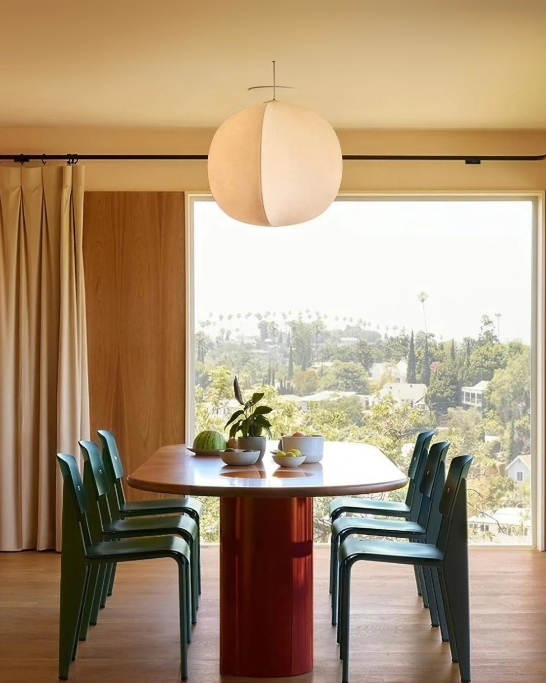 La sua struttura, che ricorda le lanterne giapponesi artigianali, diffonde la luce attraverso un paralume delicato che imita la tonalità rilassante della luna piena. Progettata per diffondere una luce delicata e soffusa, trasforma le sale da pranzo, gli angoli lettura o gli interni dei bar in santuari sereni e luminosi.