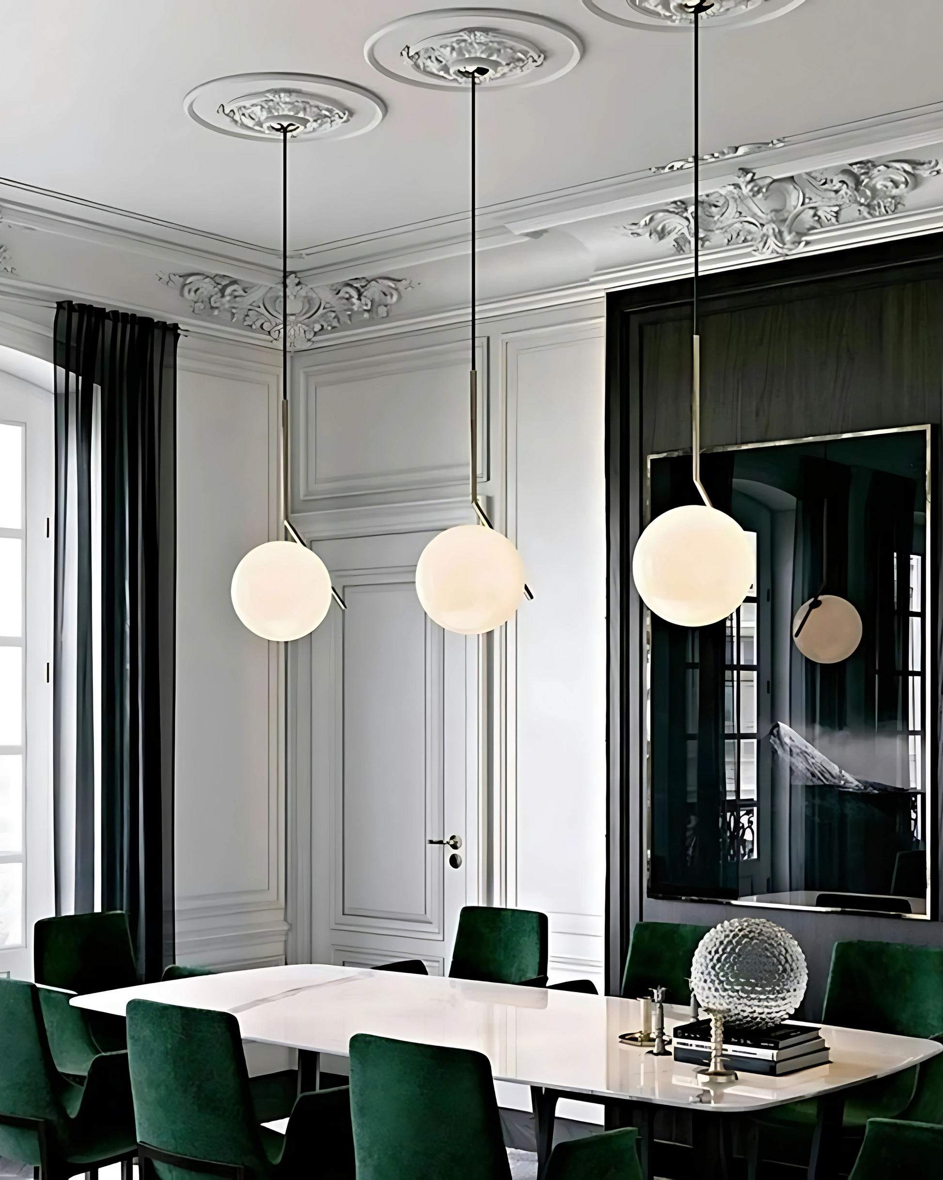 La Orbe Dorée è una sofisticata lampada a sospensione che coniuga eleganza moderna e design minimalista. Caratterizzata da un globo in vetro bianco latte liscio, delicatamente bilanciato su un'elegante struttura in metallo dorato, irradia una luce morbida e invitante. Le linee pulite e l'estetica geometrica la rendono un elemento d'arredo perfetto per interni contemporanei, sia in sala da pranzo, camera da letto o soggiorno. Con i suoi materiali di alta qualità e il design senza tempo, La Orbe Dorée aggiunge un tocco di lusso e calore a qualsiasi ambiente.