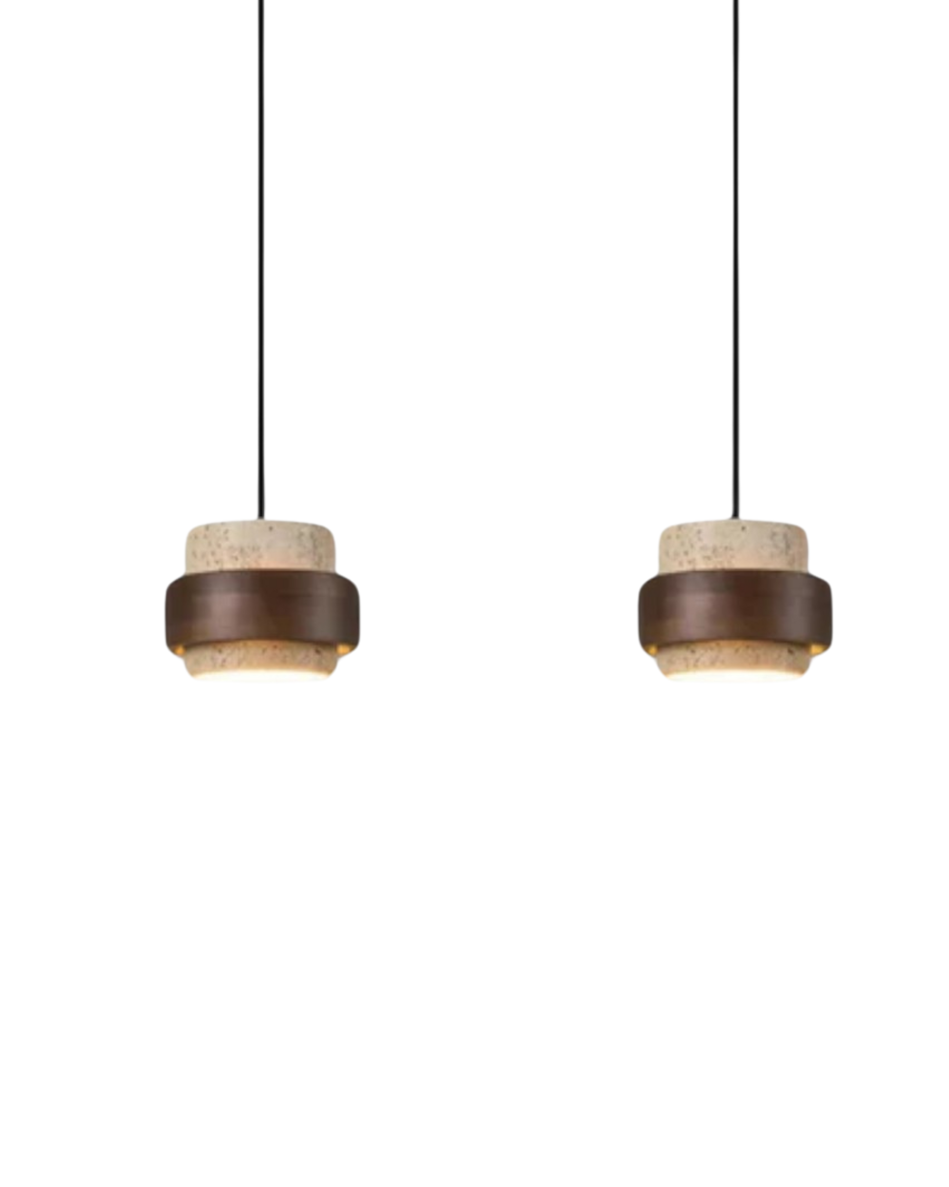Incarnazione di eleganza moderna e design senza tempo, la lampada a sospensione L'Embrun dona un tocco di raffinata raffinatezza a qualsiasi spazio. Ispirata alla delicata foschia del mare, la sua forma splendidamente scolpita combina un sorprendente contrasto di toni caldi e terrosi con linee eleganti e minimaliste. La pietra naturale testurizzata e i ricchi dettagli in legno offrono un'armoniosa fusione di natura e lusso, mentre la morbida luce sotto il paralume accuratamente realizzato illumina la casa con una luce calda e invitante.