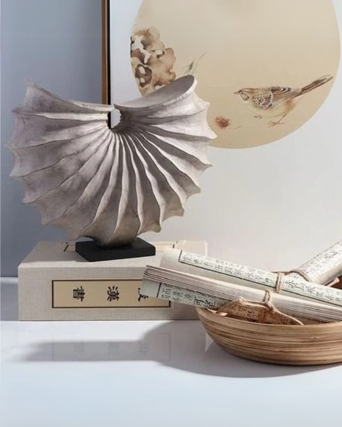 Aggiungi un tocco di lussuosa raffinatezza al tuo spazio con Le Vent Serein , una scultura astratta dal design accattivante che diventerà il fulcro di ogni ambiente. Realizzata con una forma ispirata a una conchiglia e un tocco geometrico moderno, questa opera unica dona un tocco di eleganza all'arredamento contemporaneo.