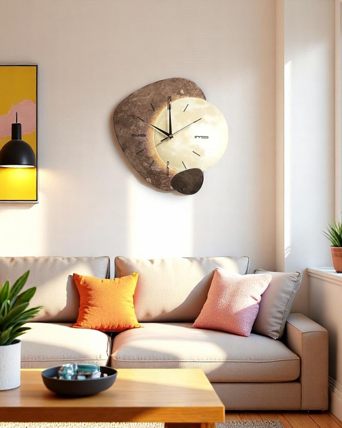 Le Temps Lunaire è un moderno orologio da parete luminoso che fonde perfettamente funzionalità ed eleganza artistica. Realizzato in cristallo , il suo esclusivo design asimmetrico funge sia da segnatempo che da accattivante opera d'arte, valorizzando l'estetica di qualsiasi ambiente.