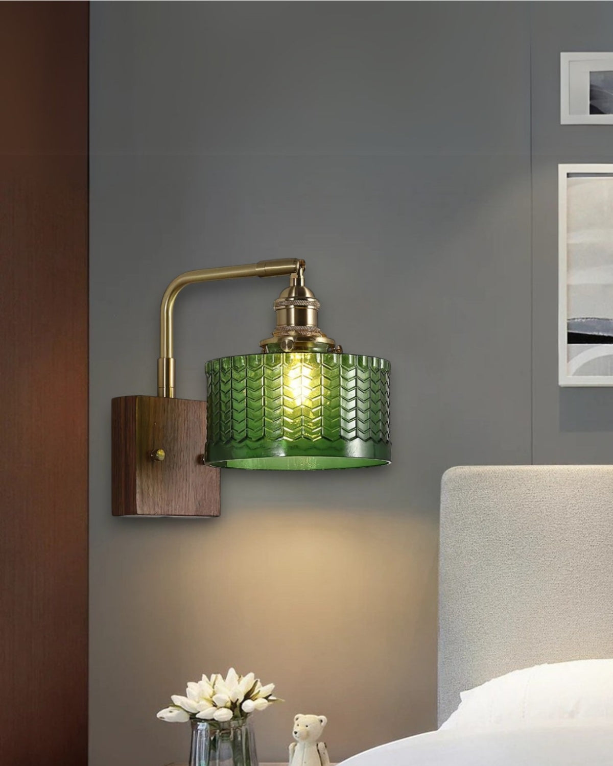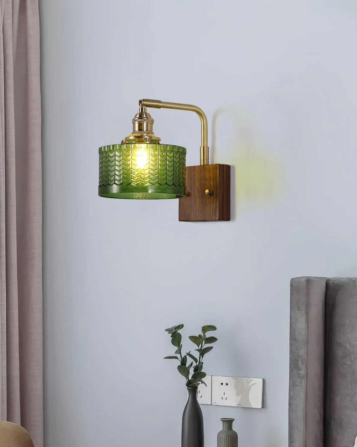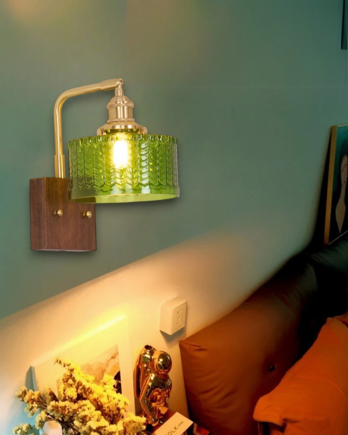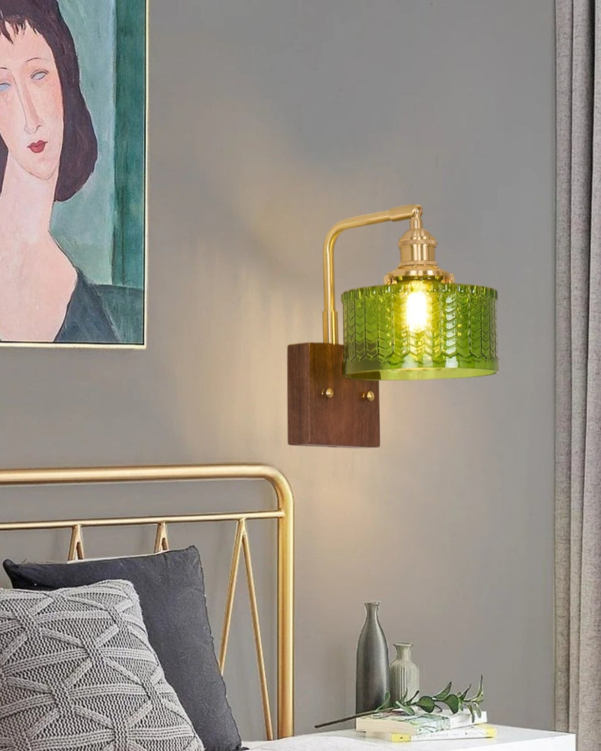 Aggiungi un tocco di raffinata eleganza alla tua casa con Le Verdelle , una lussuosa lampada da parete che fonde perfettamente il fascino vintage con un tocco contemporaneo. Questo squisito pezzo presenta uno splendido paralume in vetro verde, meticolosamente realizzato per imitare la consistenza delle squame di pesce, evocando la bellezza della natura e offrendo una luce morbida e screziata che ricorda la luce del sole che filtra attraverso le foglie rigogliose. Il design è impreziosito da accessori in ottone, che aggiungono un tocco sofisticato e antico, mentre la ricca base in legno color noce conferisce alla lampada calore e profondità.
