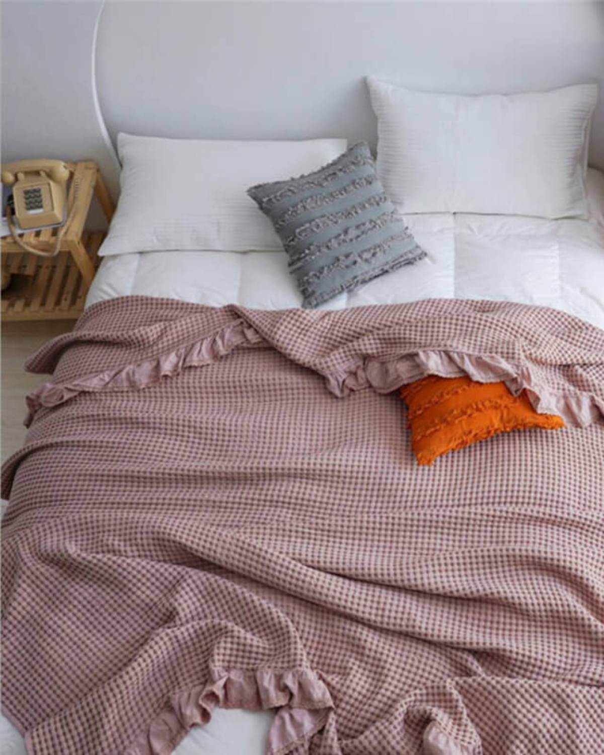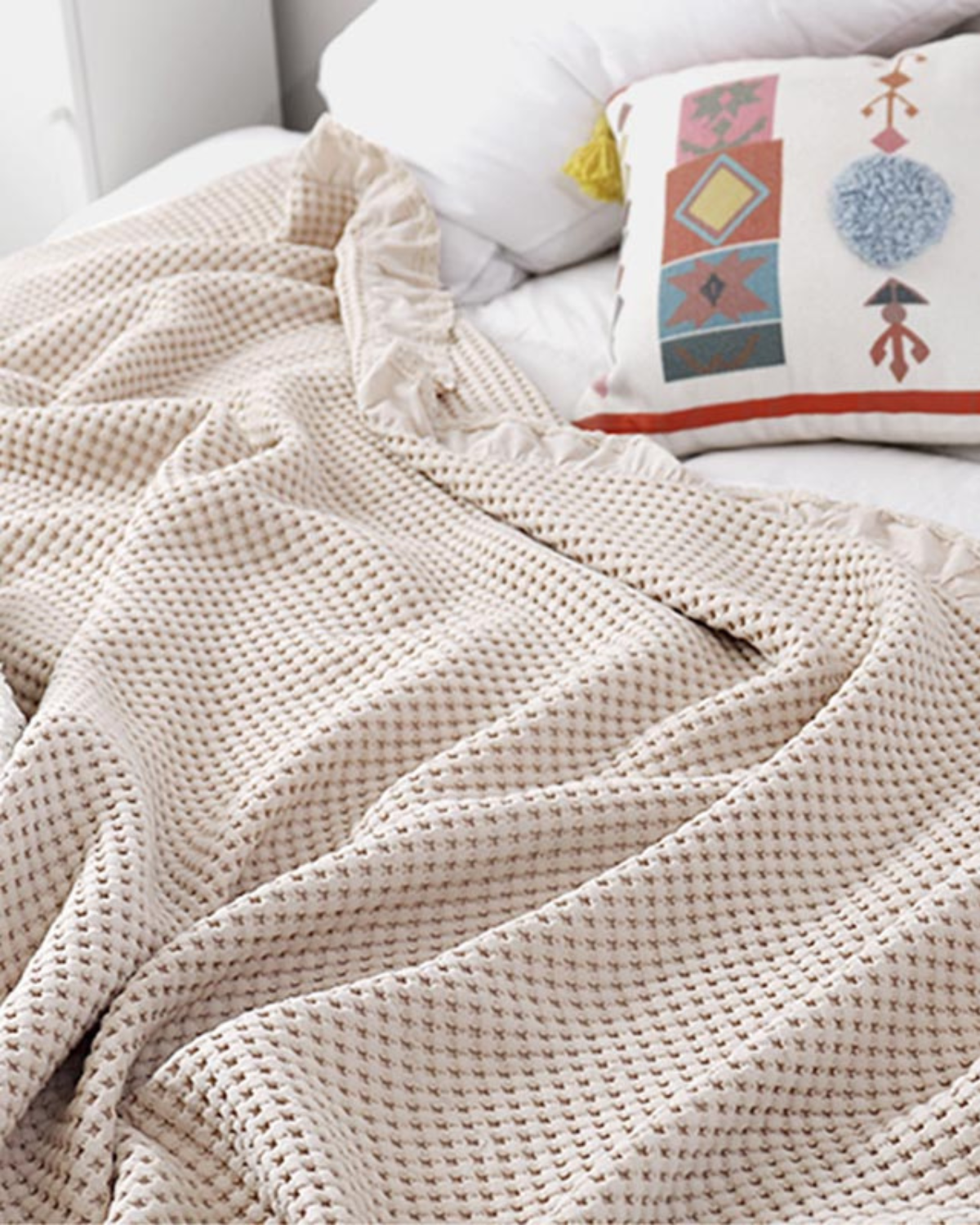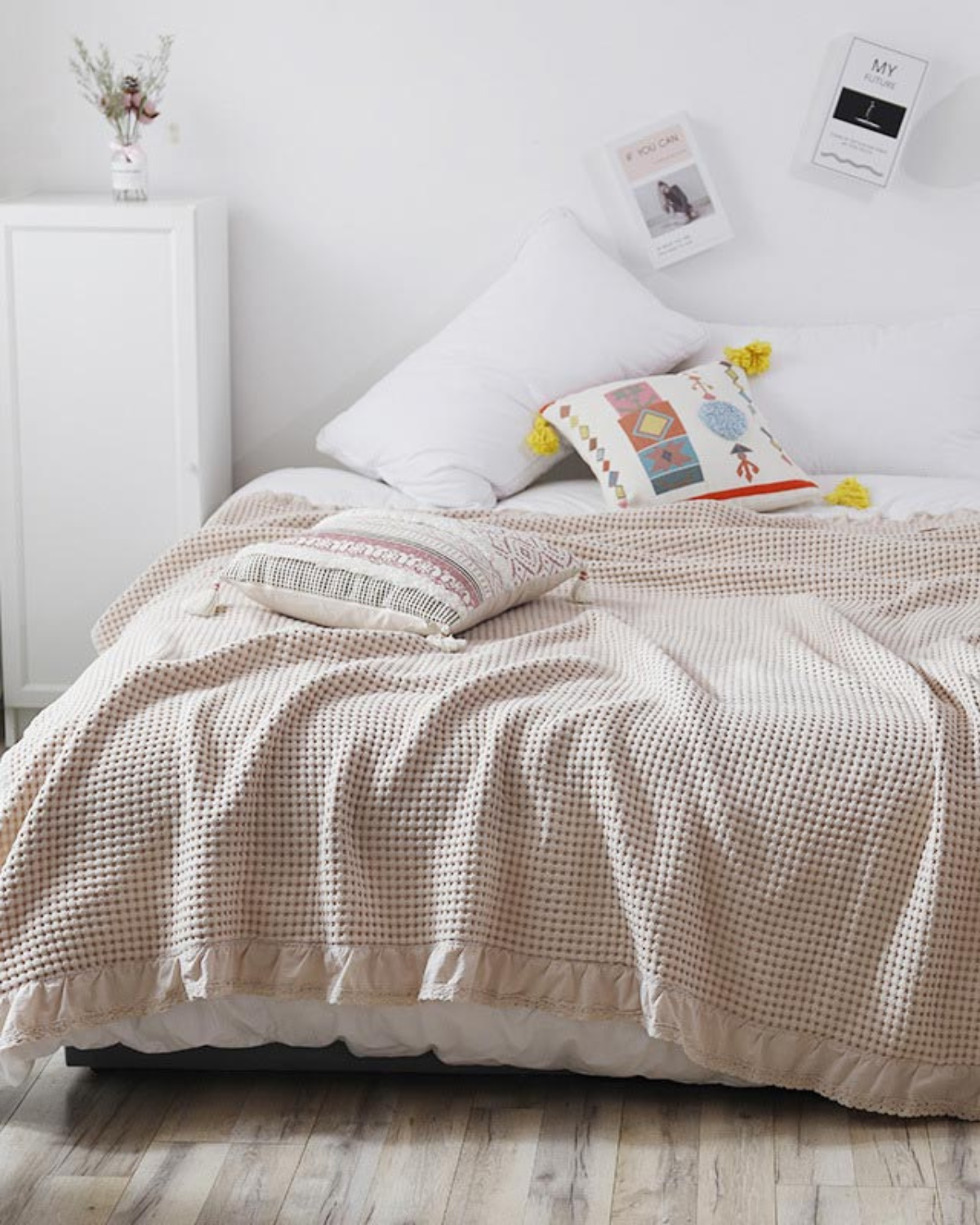 Dona alla tua casa un'eleganza naturale con la coperta Château Haven . Caratterizzata da un grazioso bordo arricciato e da una trama a nido d'ape, questa coperta è l'aggiunta perfetta per creare un'atmosfera calda e accogliente. Il suo design senza tempo si fonde perfettamente con interni sia moderni che classici, rendendola un pezzo versatile e di tendenza per la tua camera da letto o la tua zona giorno.