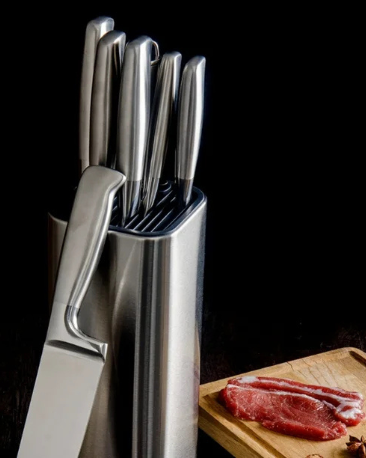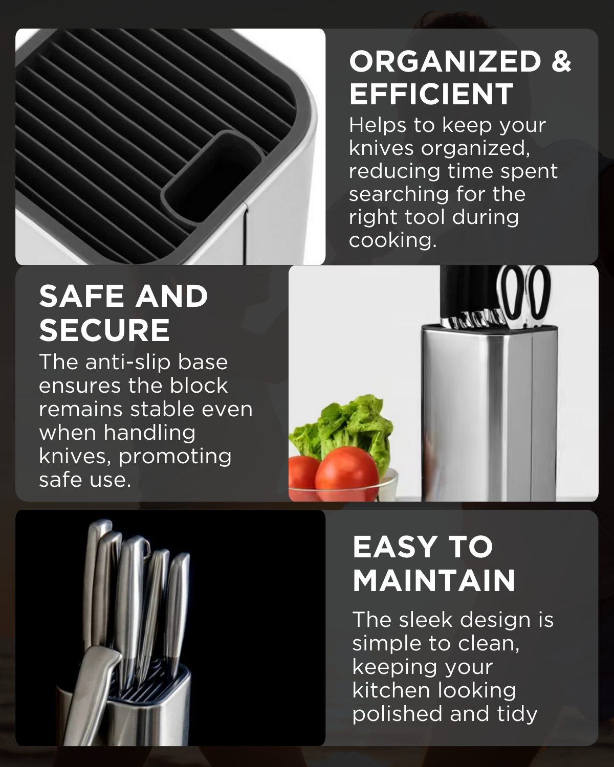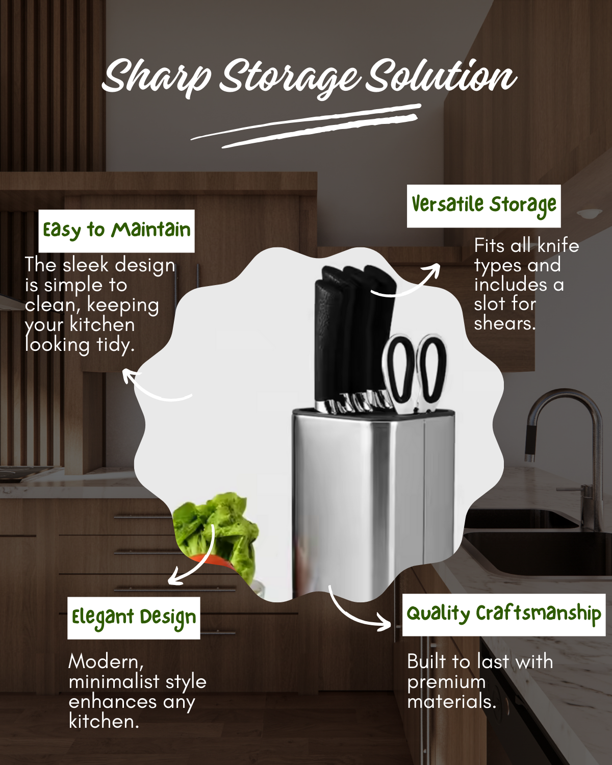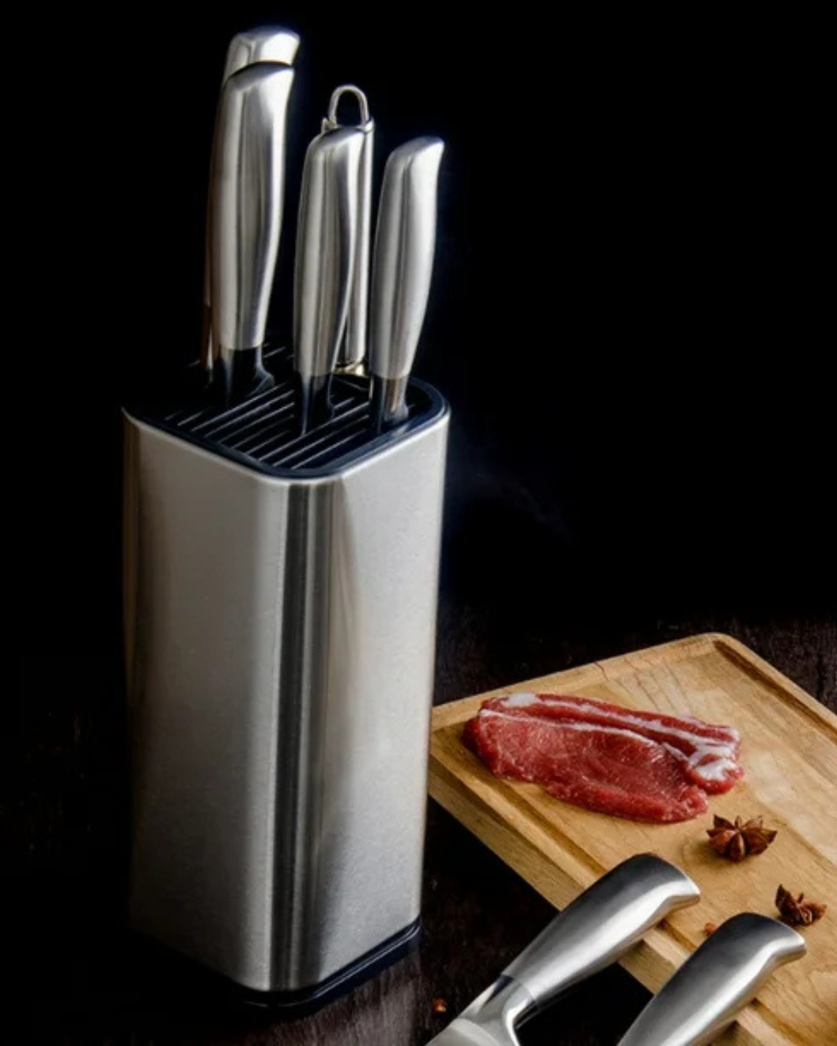 Couteau Essence non solo mantiene i tuoi coltelli organizzati e facilmente accessibili, ma la sua presenza sofisticata aggiunge un tocco di lusso al tuo piano di lavoro. Progettato per resistere alla prova del tempo, questo pezzo si integra perfettamente sia con un'estetica moderna che minimalista, aggiungendo un tocco discreto ma di grande impatto al tuo spazio.