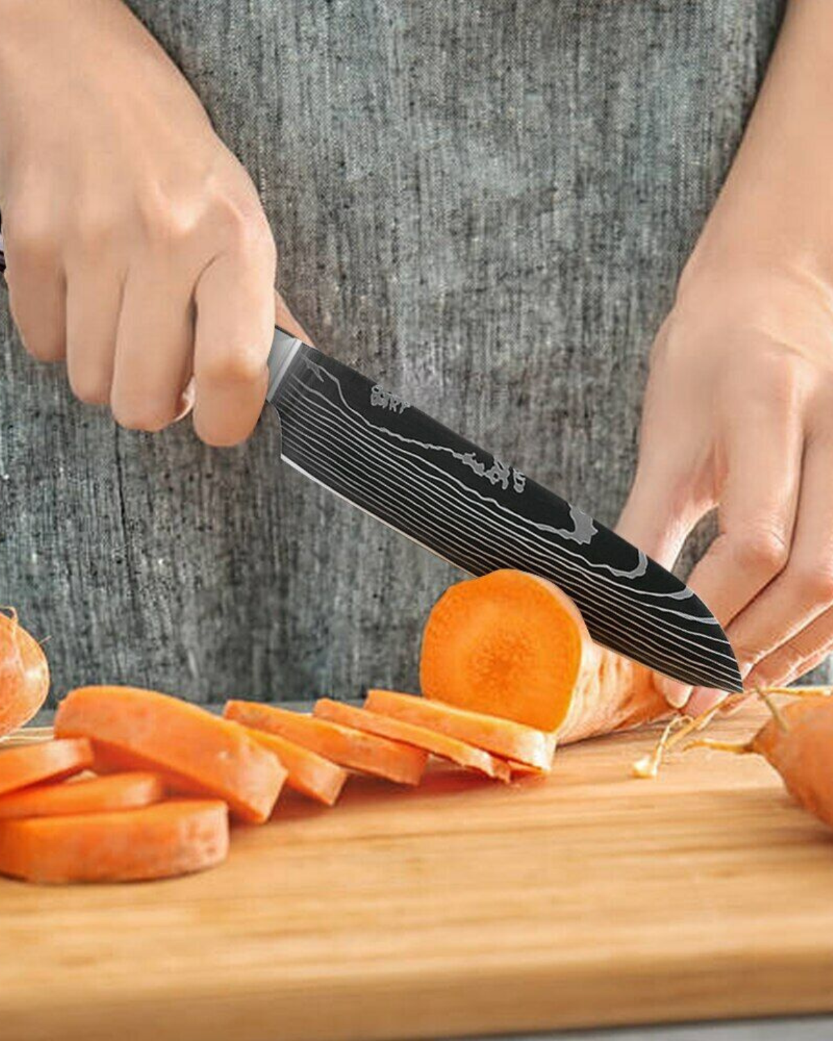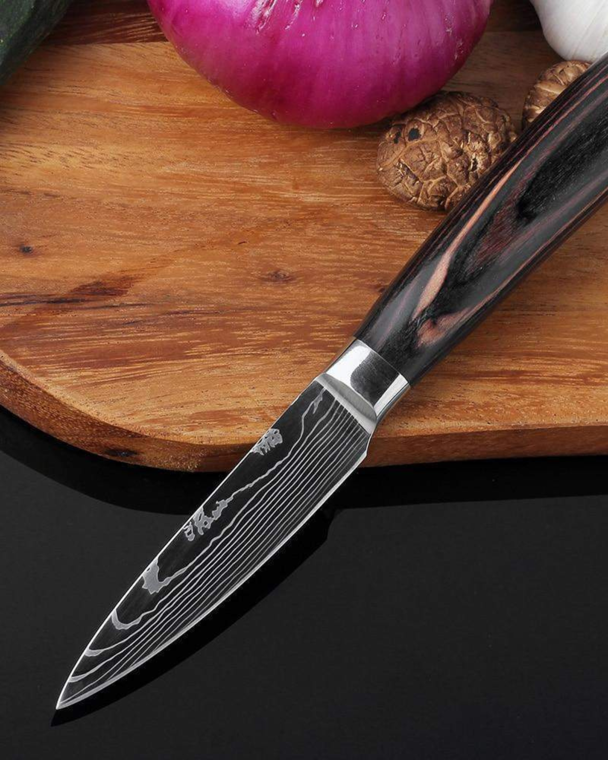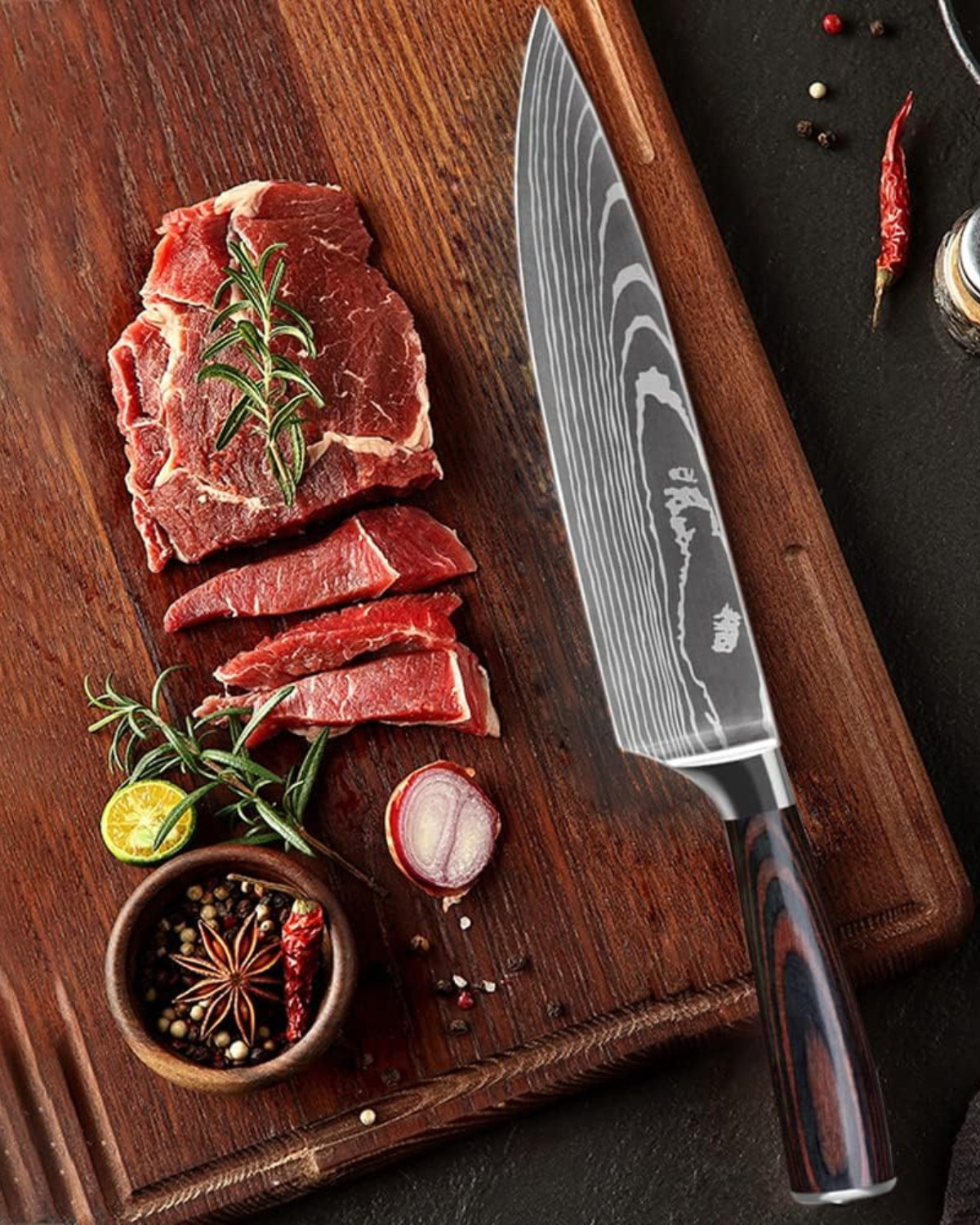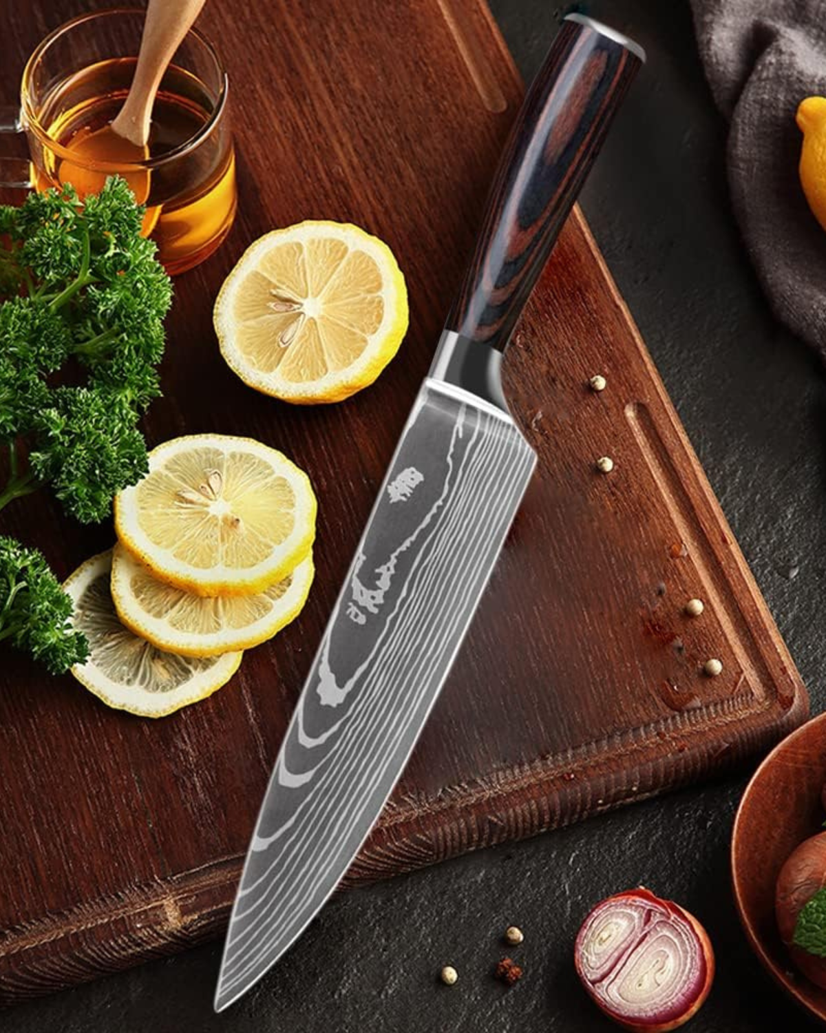Vi presentiamo il Couteau Prestige Set , una magistrale collezione di tre coltelli meticolosamente realizzati, pensati per gli chef più esigenti. Con lame forgiate in pregiato acciaio Damasco ad alto tenore di carbonio, ogni coltello offre affilatura, precisione e durata eccezionali. Gli eleganti manici ergonomici garantiscono una presa comoda, consentendo un controllo senza sforzo e movimenti fluidi in cucina. Questo set include un versatile coltello da chef, un agile coltello da cucina e un coltello multiuso di precisione, ognuno adatto a una varietà di compiti culinari. Il sorprendente design ondulato delle lame aggiunge un tocco artistico alla vostra cucina, rendendo questi coltelli non solo funzionali, ma anche un'affermazione di stile. Esaltate la vostra esperienza culinaria con il Couteau Prestige Set , dove l'artigianato incontra il lusso.