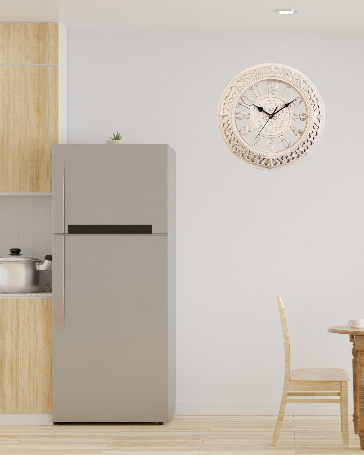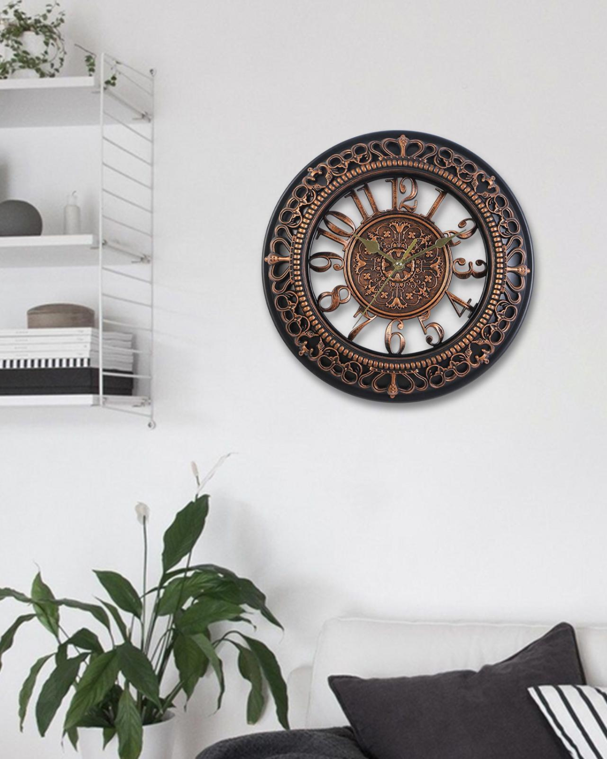 Il design traforato permette alla parete retrostante di integrarsi discretamente nell'oggetto, aggiungendo profondità e versatilità al vostro arredamento. Con audaci numeri romani e lancette elegantemente scolpite, l'orologio Époque Royale è sia un orologio funzionale che un'affascinante opera d'arte.