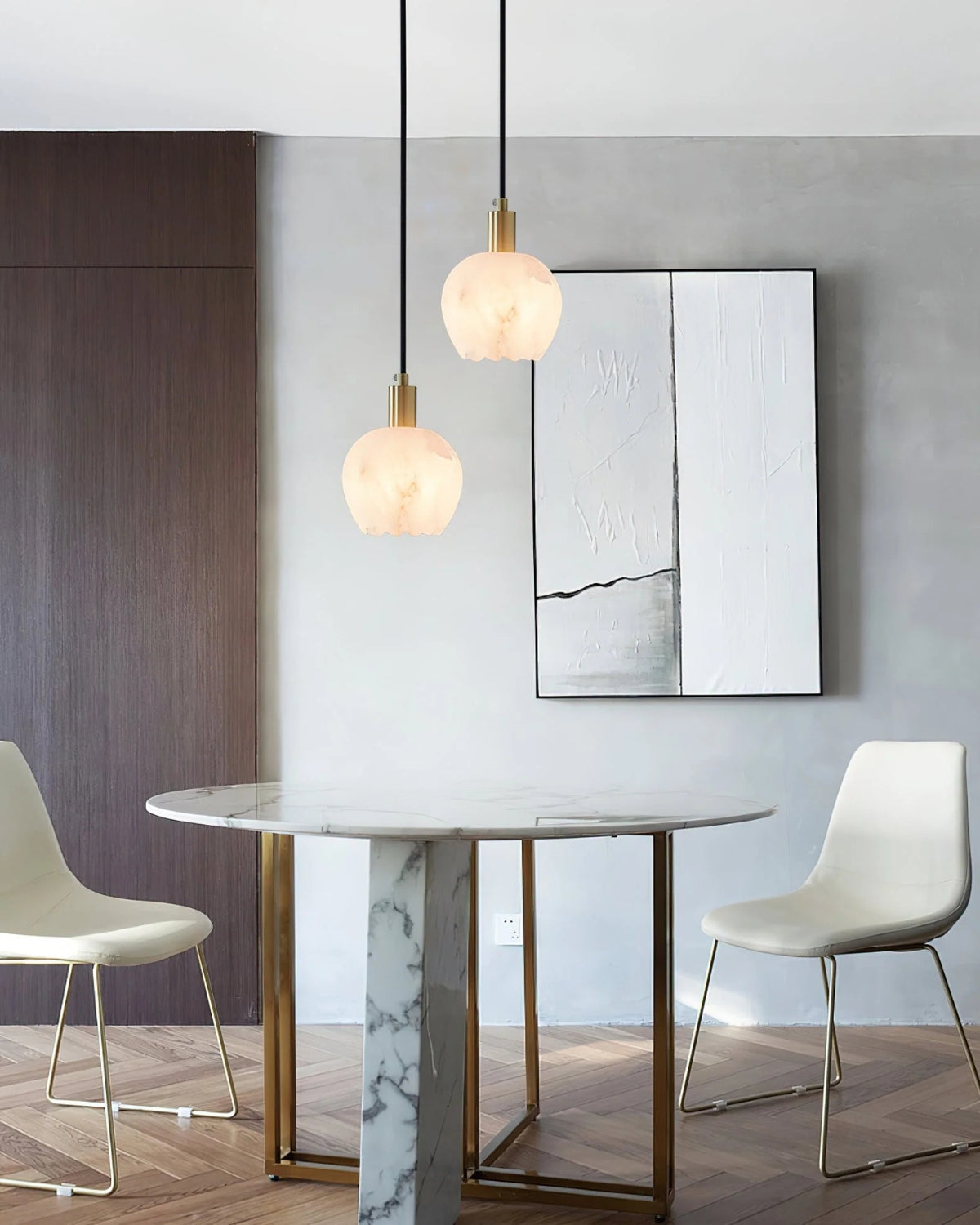 Trasforma la tua casa con la lampada a sospensione L'Élise Alabaster , una squisita fusione di design moderno e raffinatezza naturale. Questa lampada a sospensione presenta un paralume in alabastro finemente lavorato che emette una luce calda e invitante, perfetta per valorizzare l'atmosfera di qualsiasi stanza. Che tu voglia impreziosire la tua camera da letto, il soggiorno o gli spazi più intimi, L'Élise aggiunge un tocco di lusso raffinato al tuo arredamento.
