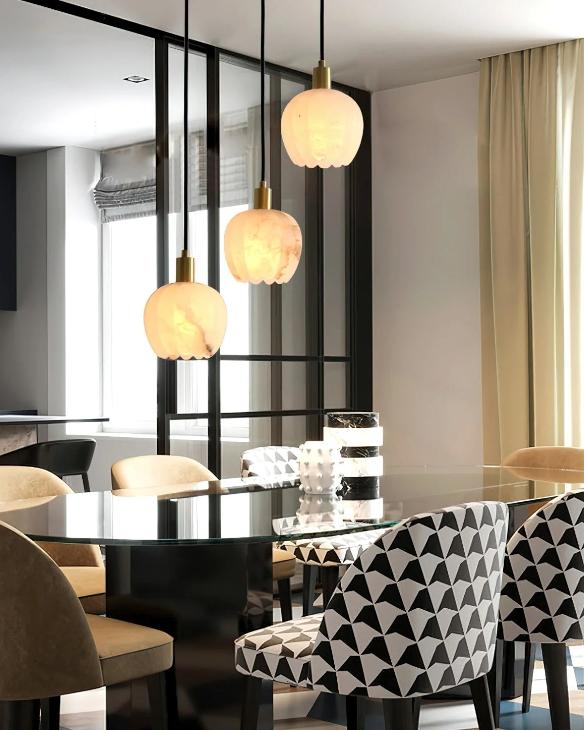Crea l'atmosfera perfetta nella tua casa con la lampada a sospensione L'Élise Alabaster . Che tu voglia aggiungere un tocco di serenità al tuo soggiorno o valorizzare la tua camera da letto con un tocco di eleganza, questa lampada a sospensione porta funzionalità e bellezza nel tuo spazio. Goditi il fascino senza tempo e l'atmosfera lussuosa che crea.