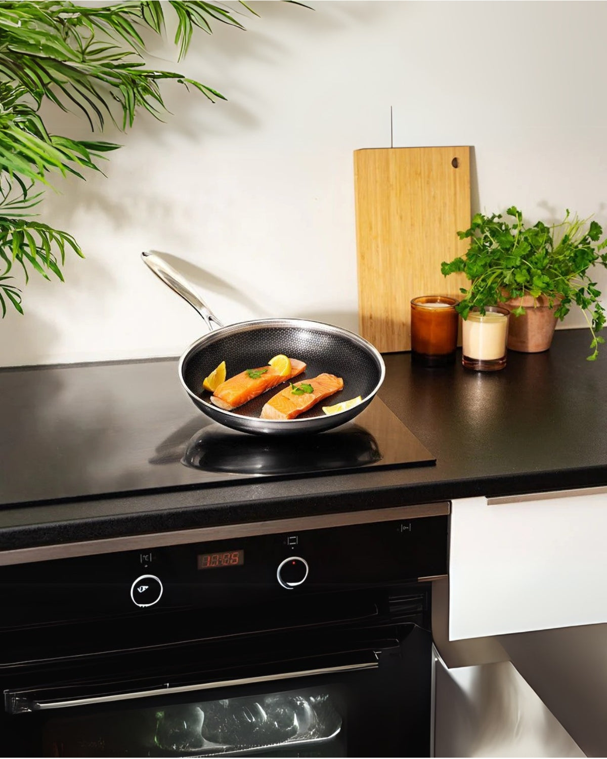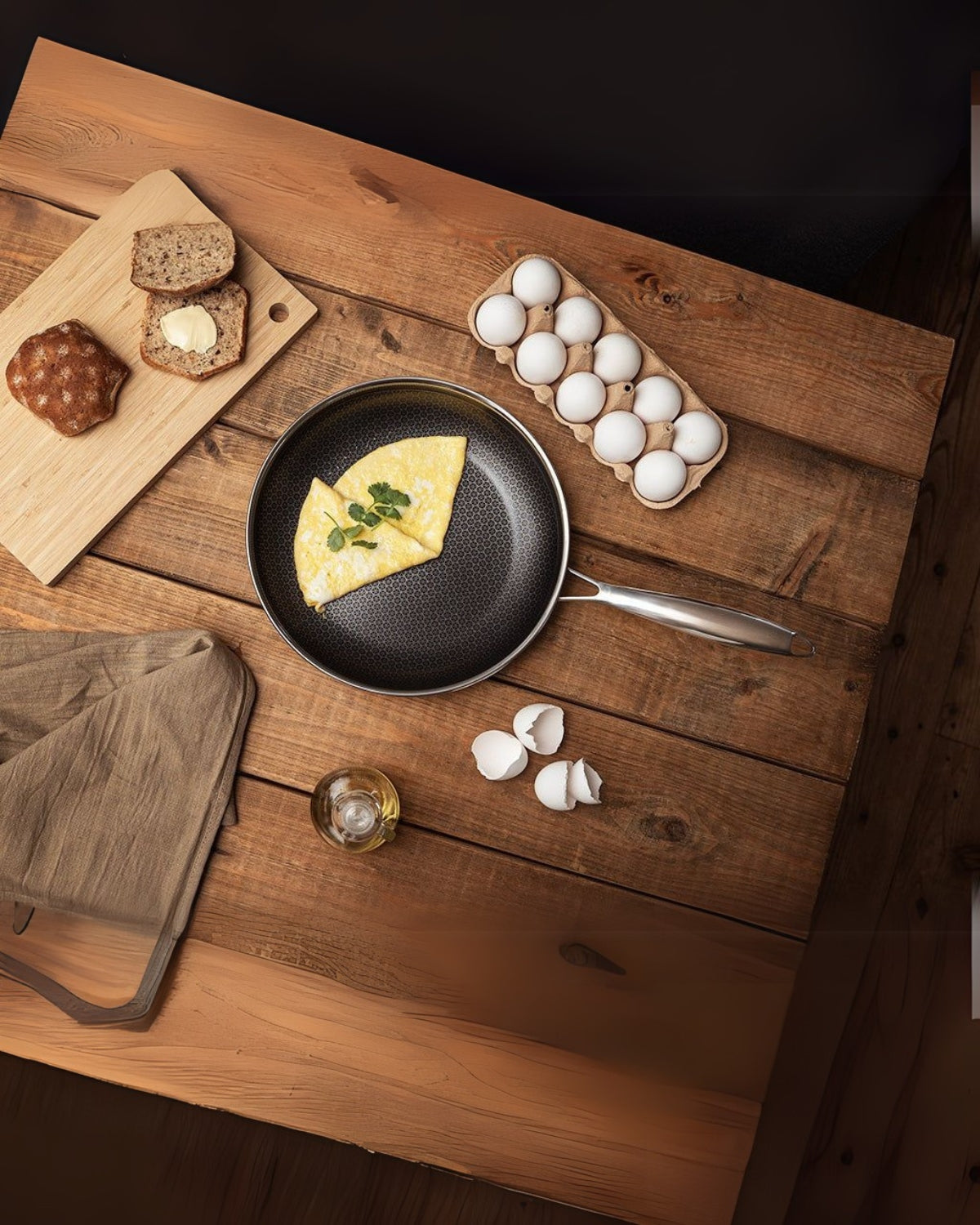 La Flamme non è solo una padella: è un inno alla precisione, allo stile e all'innovazione. Progettata per chi esige il massimo dalle proprie pentole, questa padella unisce la tecnologia ibrida all'avanguardia a un design senza tempo, creando il perfetto equilibrio tra eleganza e funzionalità quotidiana.