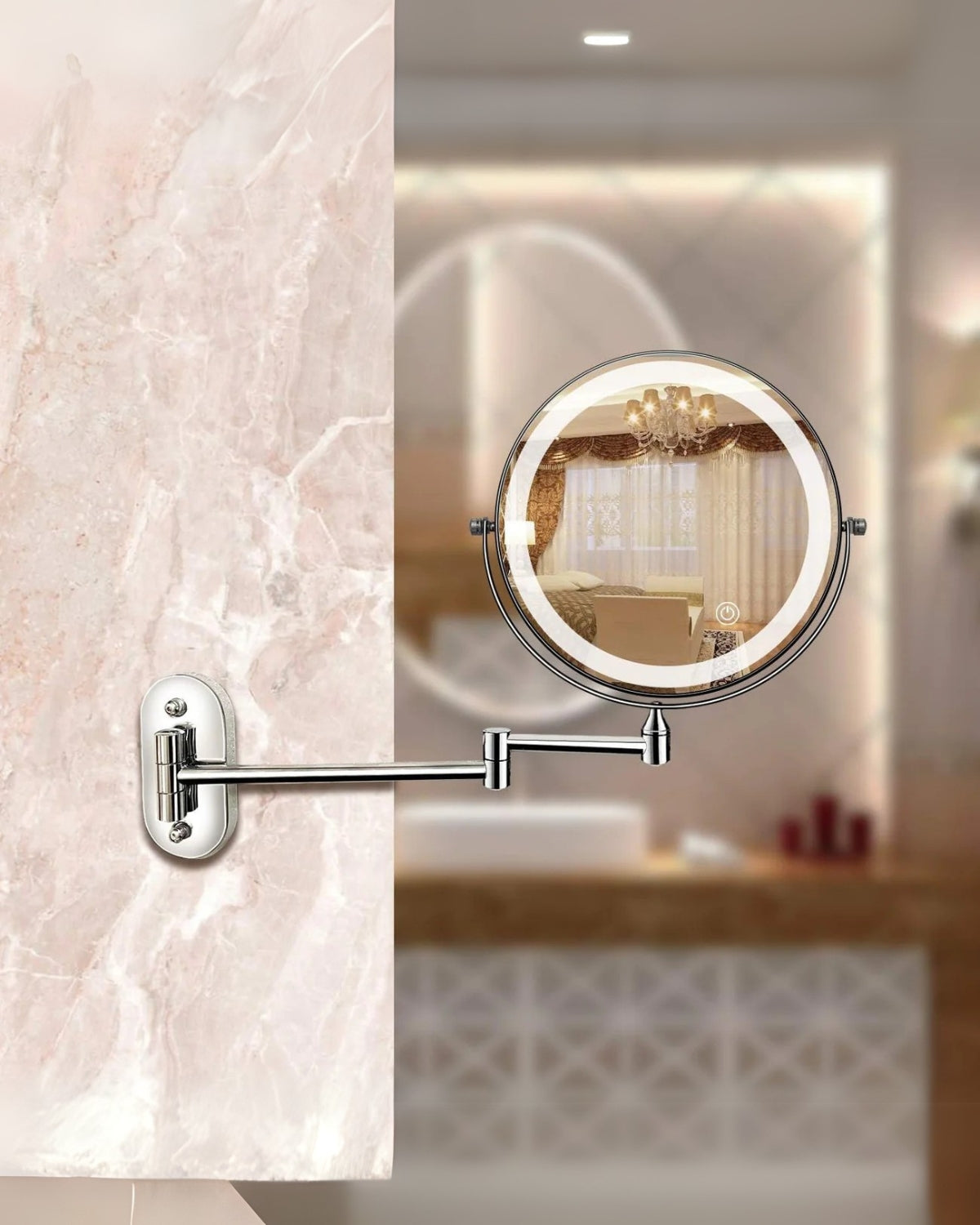Vi presentiamo Le Miroir Éclat , un'aggiunta sofisticata alla vostra routine di bellezza che unisce eleganza e funzionalità avanzate. Questo specchio ingranditore a LED ricaricabile, con finitura in elegante argento cromato, offre opzioni di ingrandimento regolabili di 3x, 5x, 7x o 10x, per soddisfare le vostre specifiche esigenze di cura personale. L'illuminazione a LED con controllo touch offre tre impostazioni di colore: bianco naturale, bianco caldo e bianco freddo, garantendo un'illuminazione ottimale per un'applicazione precisa del trucco e la cura personale. Realizzato in vetro di alta qualità e con una resistente struttura in acciaio inossidabile, questo specchio non solo valorizza l'estetica del vostro mobiletto, ma offre anche prestazioni durature.