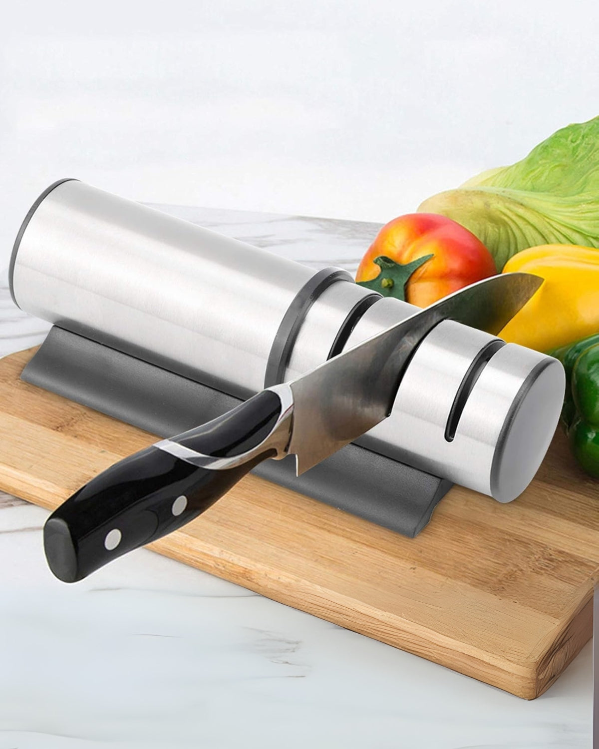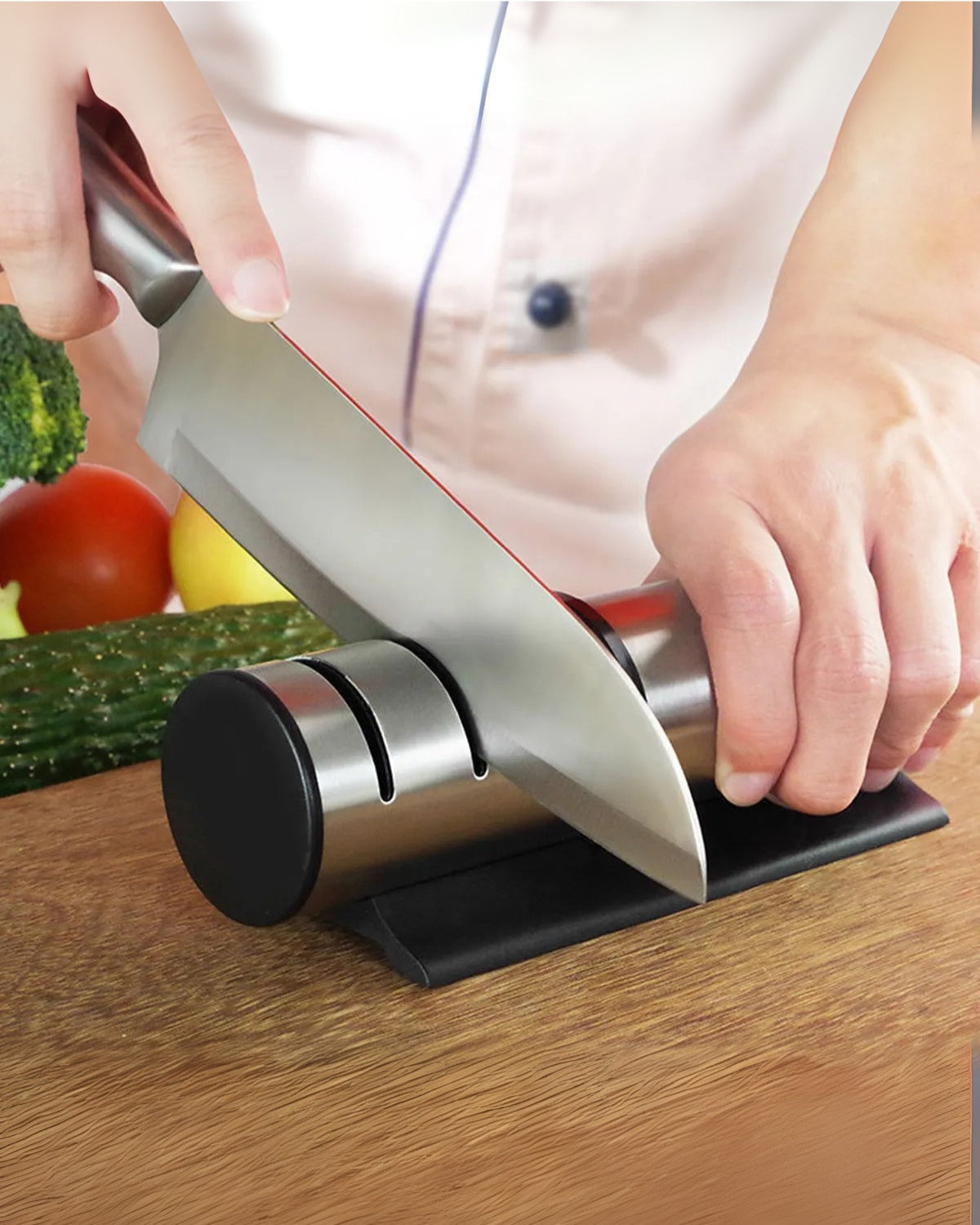 Progettato per chef esigenti e cuochi amatoriali, questo affilacoltelli professionale è meticolosamente progettato per ripristinare e mantenere il filo affilato come un rasoio delle lame con facilità e sicurezza. Non appena il taglio diventa leggermente difficile, è il momento di ricorrere a questo compagno essenziale.
