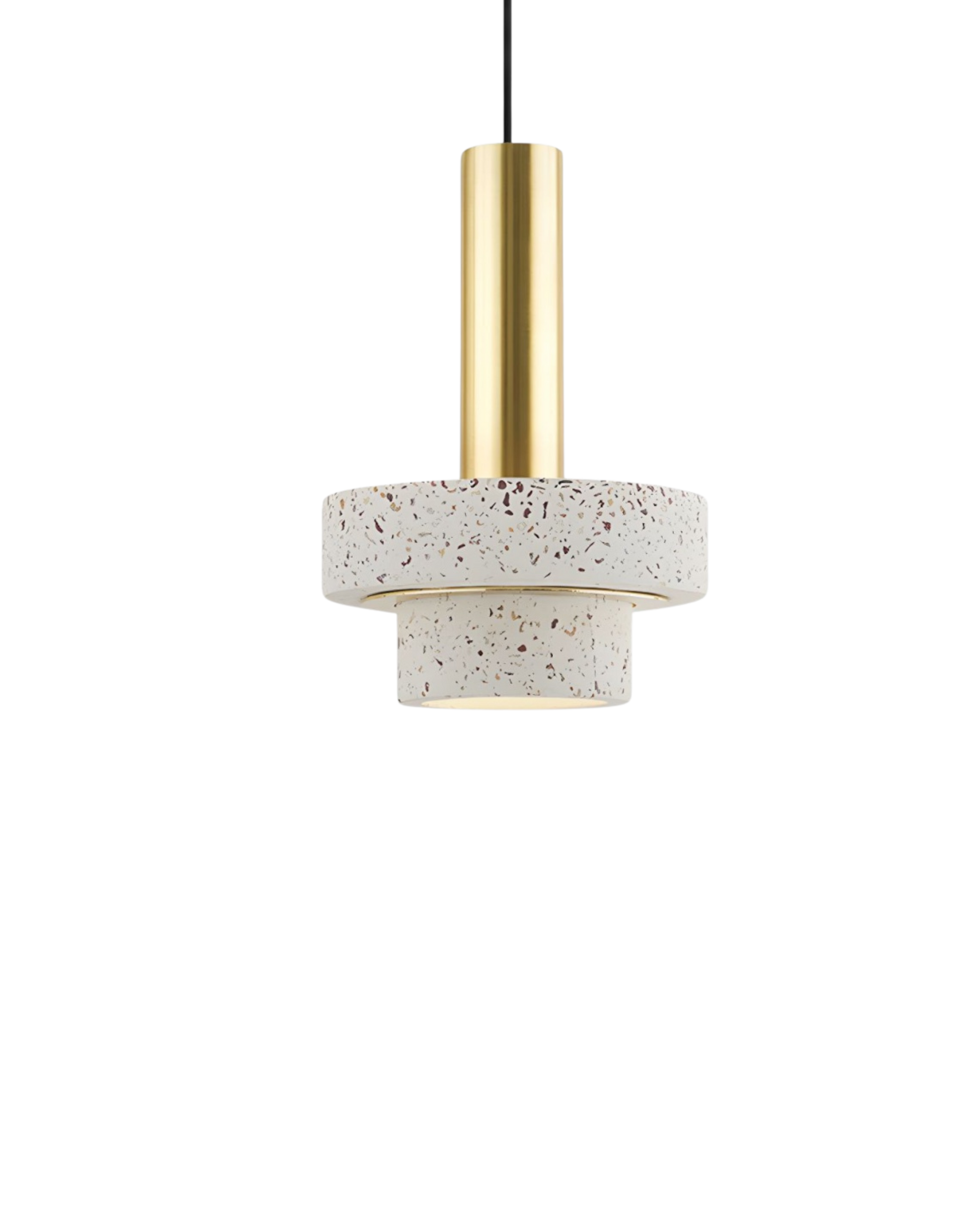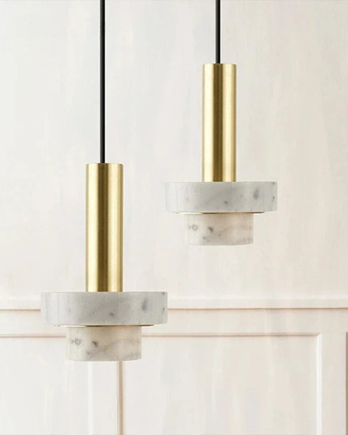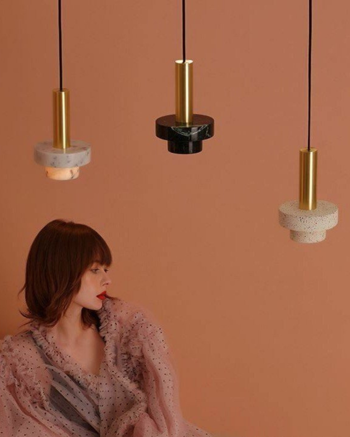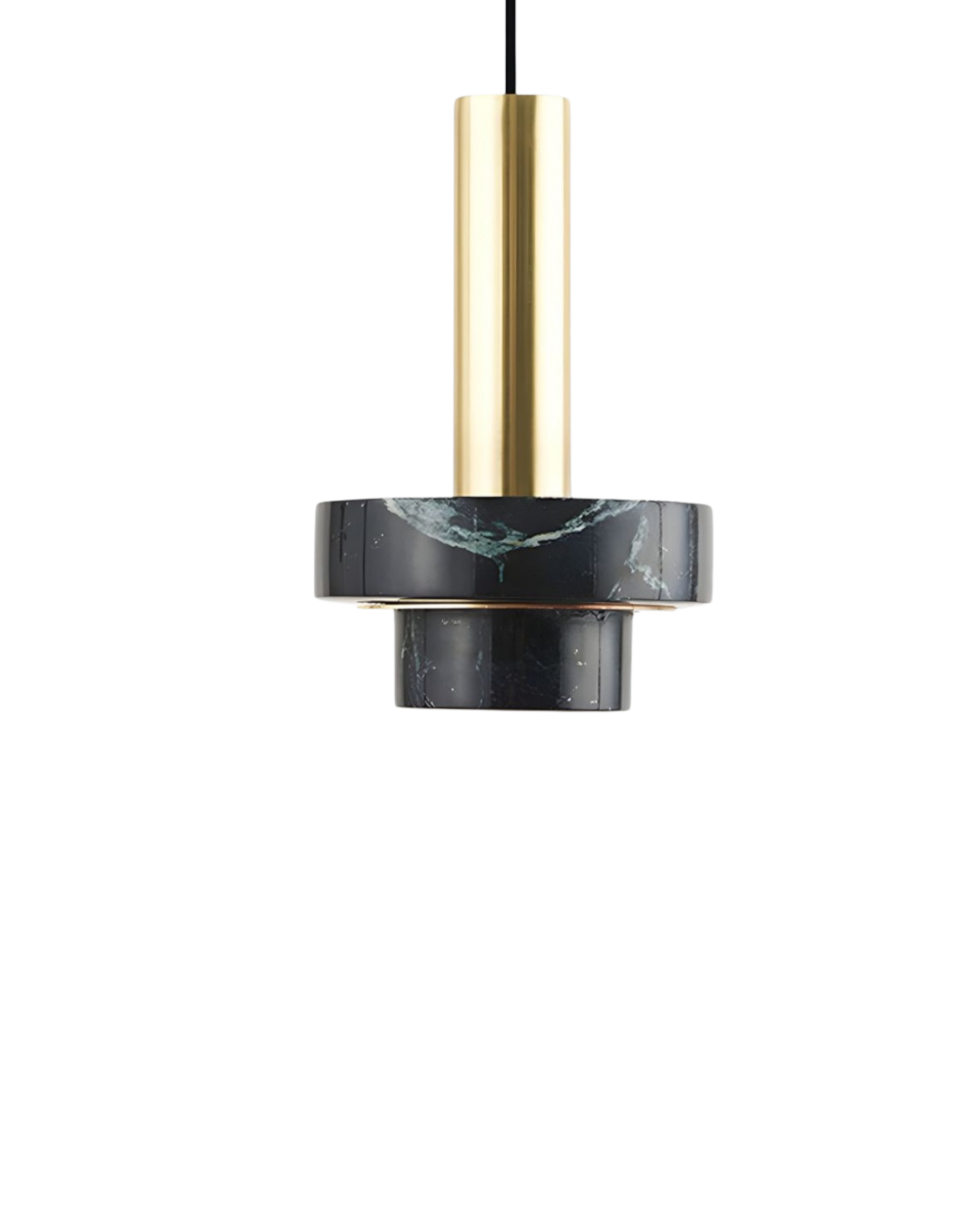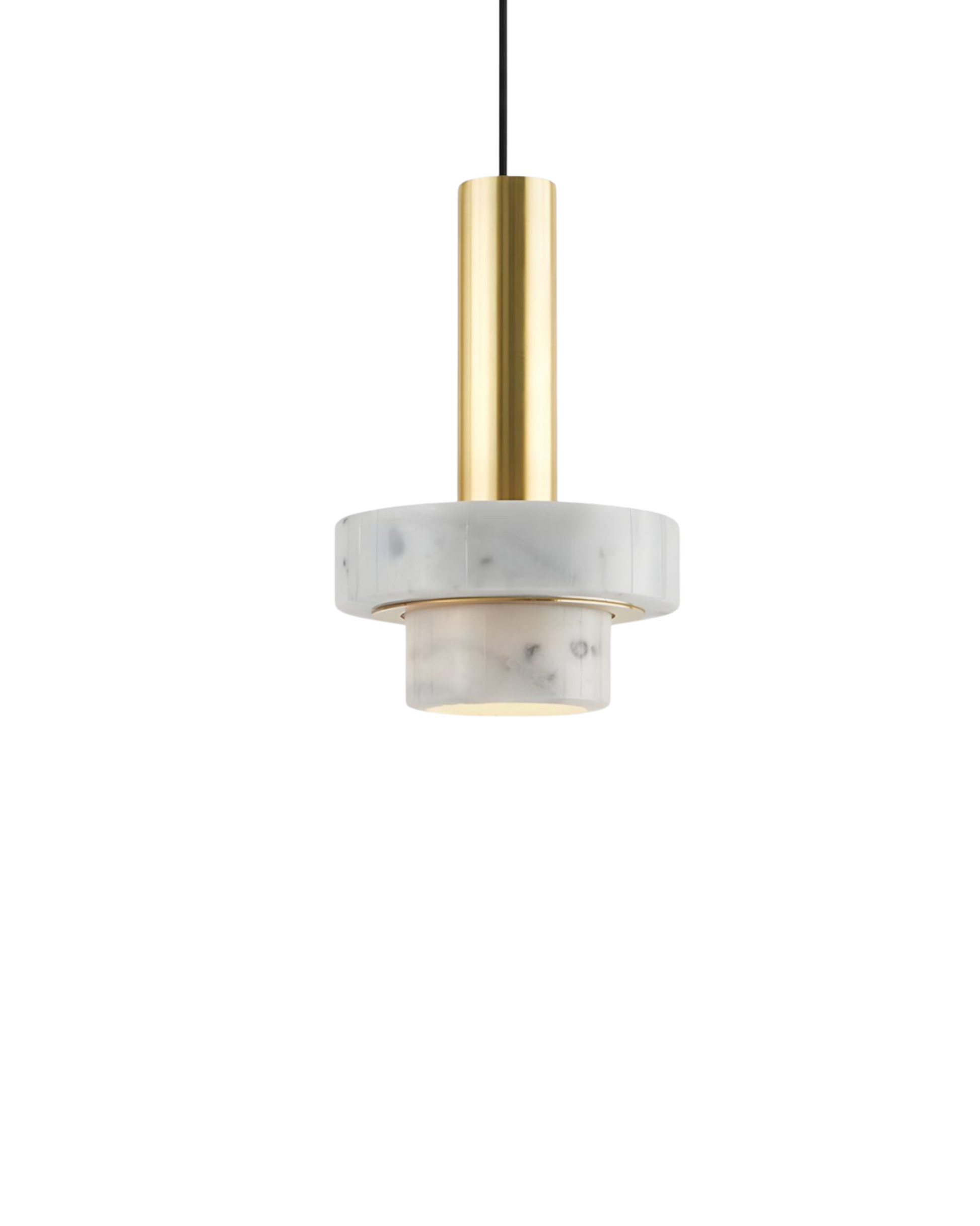 La lampada è caratterizzata da un elegante stelo cilindrico in ottone, abbinato a un audace elemento centrale disponibile in una gamma di materiali pregiati, dalla ceramica opaca alla pietra lucida. La sua luce morbida e diffusa crea un'atmosfera calda e accogliente, mentre il design pulito e geometrico conferisce un tocco di raffinatezza a qualsiasi ambiente.