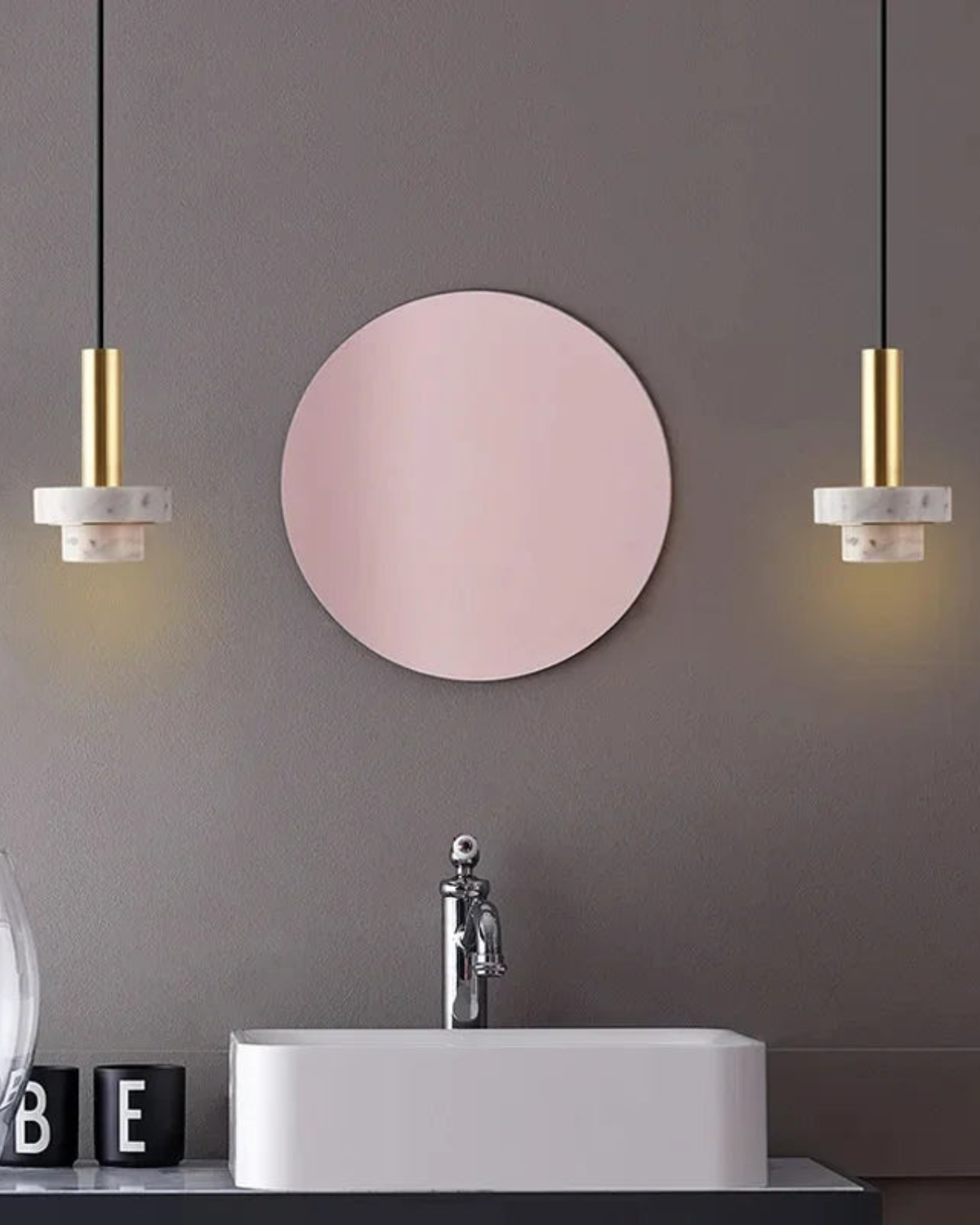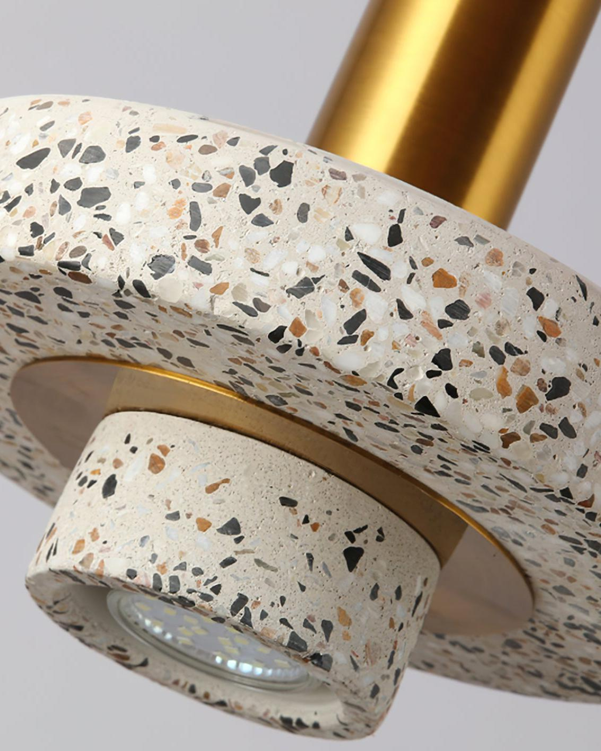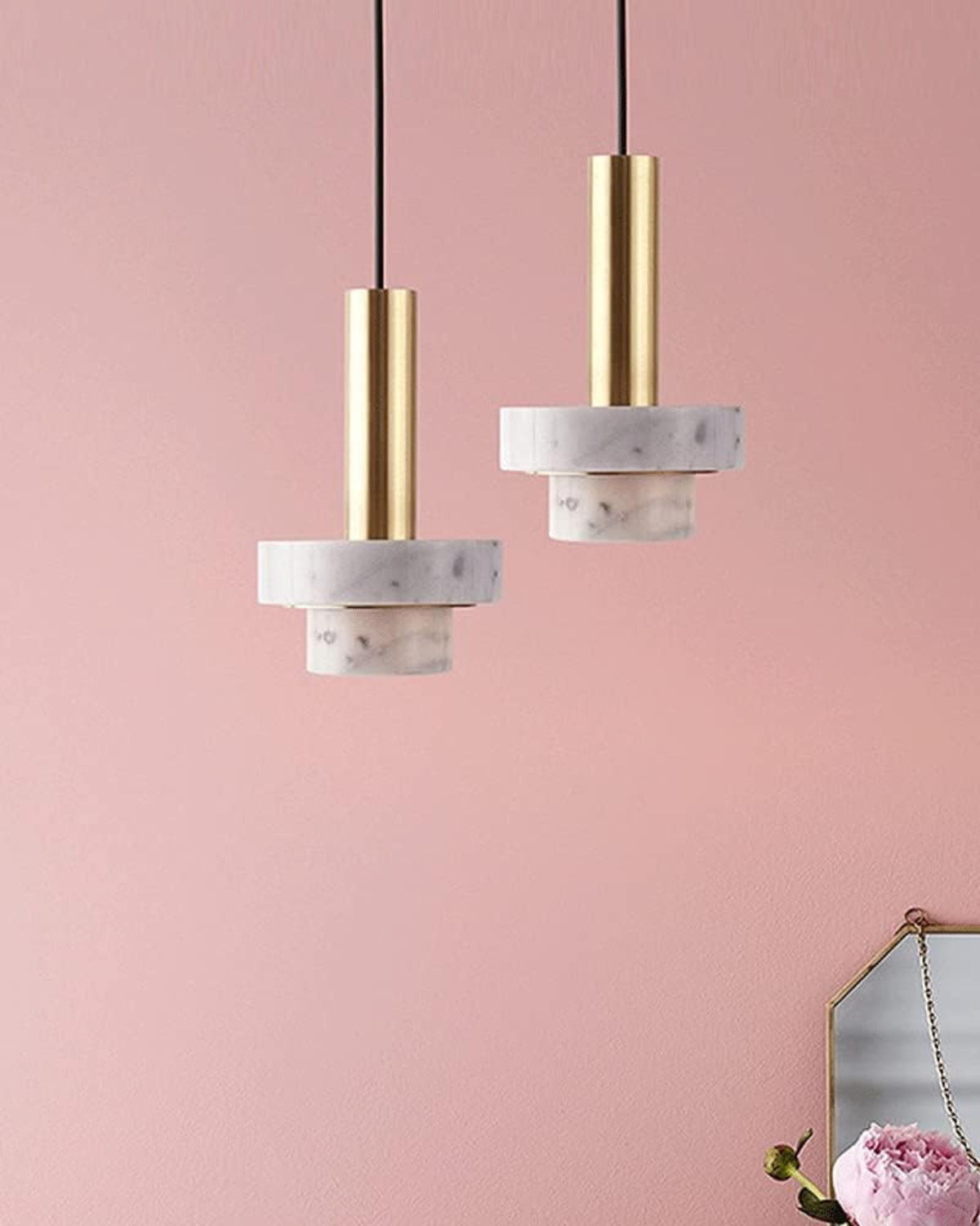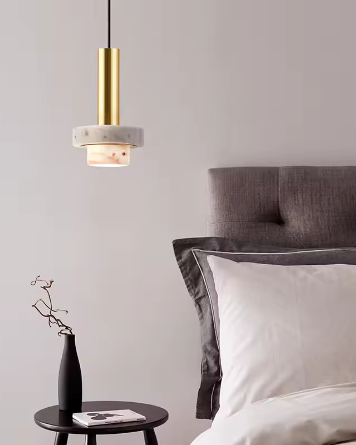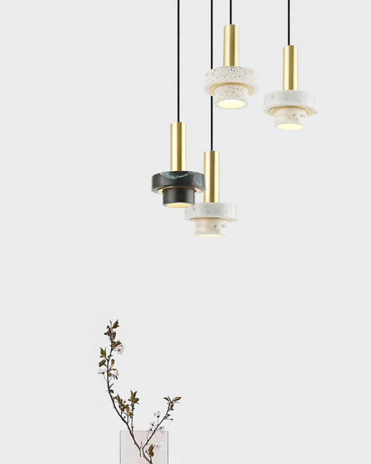 La lampada è caratterizzata da un elegante stelo cilindrico in ottone, abbinato a un audace elemento centrale disponibile in una gamma di materiali pregiati, dalla ceramica opaca alla pietra lucida. La sua luce morbida e diffusa crea un'atmosfera calda e accogliente, mentre il design pulito e geometrico conferisce un tocco di raffinatezza a qualsiasi ambiente.