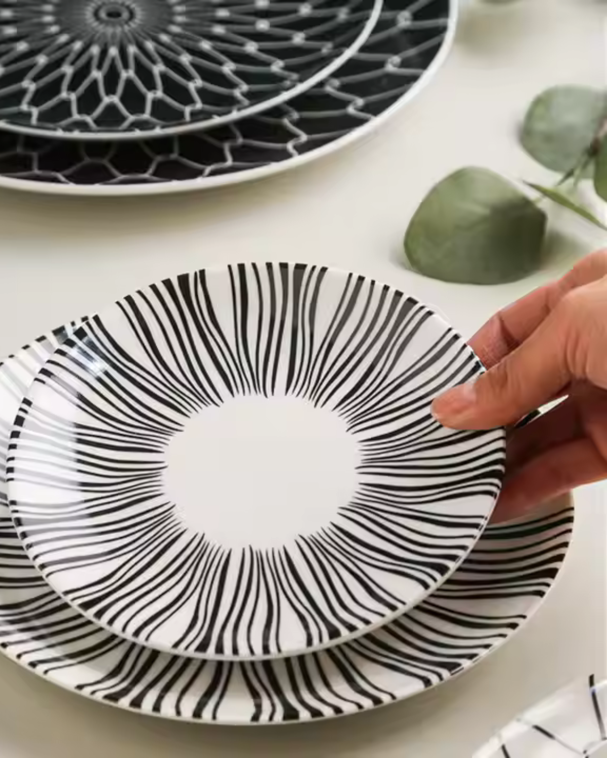 Perfetto sia per pasti informali che per cene eleganti, il piatto Savoir Pattern trasforma qualsiasi pietanza in un capolavoro visivo. Il suo design audace ma raffinato si sposa perfettamente con l'estetica giapponese, moderna e minimalista, rendendolo un'aggiunta versatile alla vostra collezione di piatti da pranzo.